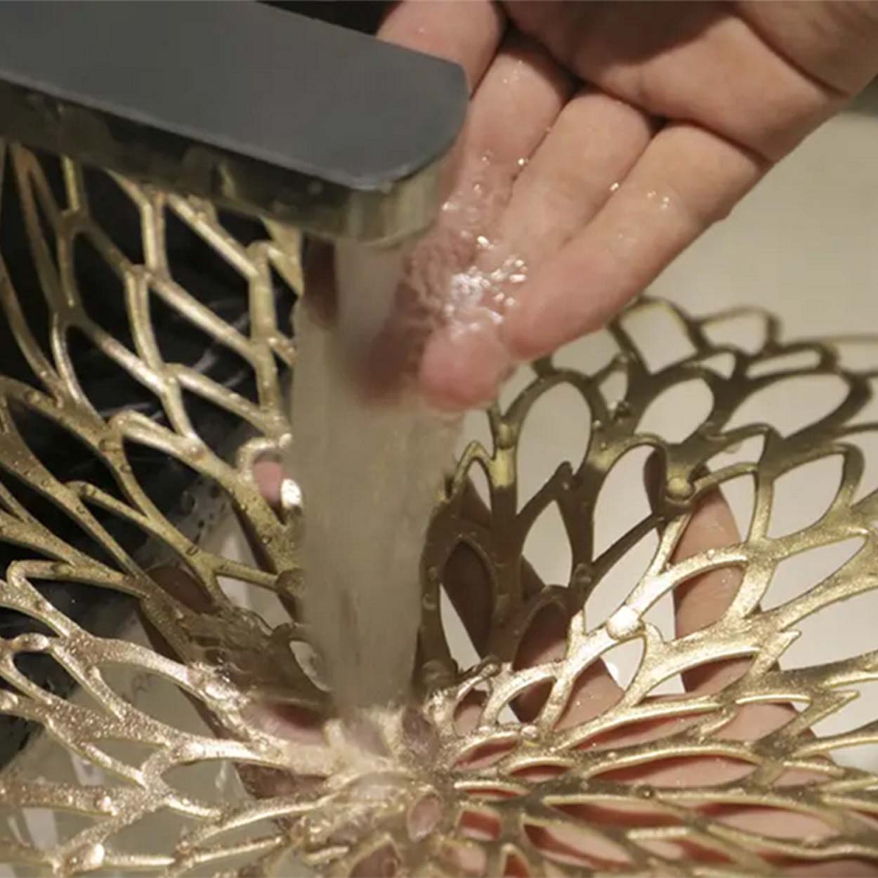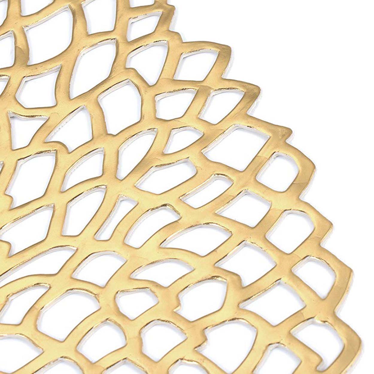 Rund bordstablett som skyddar bordet vid dukning och servering. Den öppna designen ger ett luftigt uttryck och fungerar lika bra till vardags som vid mer uppdukade måltider. Plastmaterialet hjälper till att minska repor och fläckar från tallrikar, bestick och glas. Den vattentåliga ytan gör rengöringen enkel: torka av med fuktig trasa eller skölj under rinnande vatten. Halkfri funktion gör att underlägget ligger stabilt på bordet. Diameter 41 cm ger bra täckning runt kuvertet.