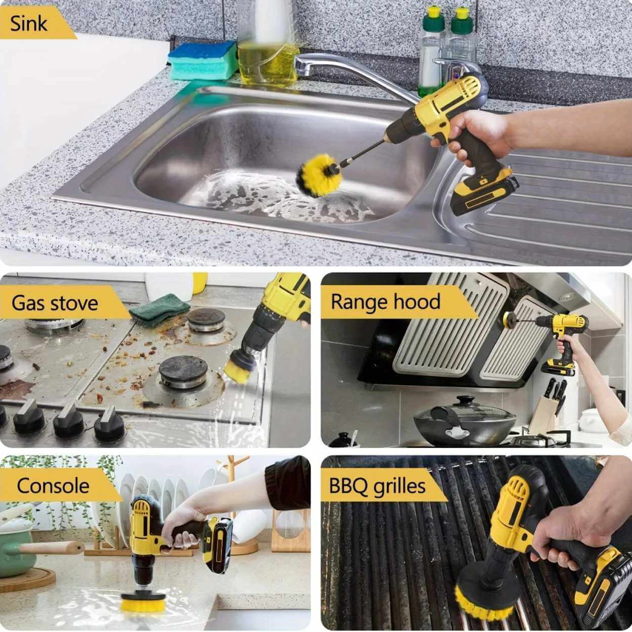 Borrmaskinsborstar i 22 delar som gör skruvdragaren till ett effektivt verktyg för skrubbning, skurning och polering. Setet innehåller flera typer av rengöringsborstar, polersvampar och slipande nonwoven för att kunna anpassa arbetet efter yta och smutsgrad. Alla tillbehör har 8 mm universalstift för bred kompatibilitet, och svampar samt fiberdukar fästs med kardborre för snabba byten. Förlängningsskaftet på 12 cm hjälper vid rengöring i trånga och svåråtkomliga utrymmen, exempelvis på fälgar, i verkstad eller i hemmet.