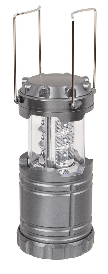 Hopfällbar campinglykta som ger stabilt ljus i tältet eller på campingplatsen när mörkret faller. Lampan tänds och släcks automatiskt när den dras ut eller trycks ihop, vilket gör den snabb att använda även med kalla händer. Två utfällbara handtag gör den enkel att bära eller hänga upp för jämn belysning vid kvällssysslor som packning, matlagning eller läsning. Drivs av 3 AAA-batterier, så den fungerar utan eluttag och är lätt att ta med på camping, fiske och båtliv.
