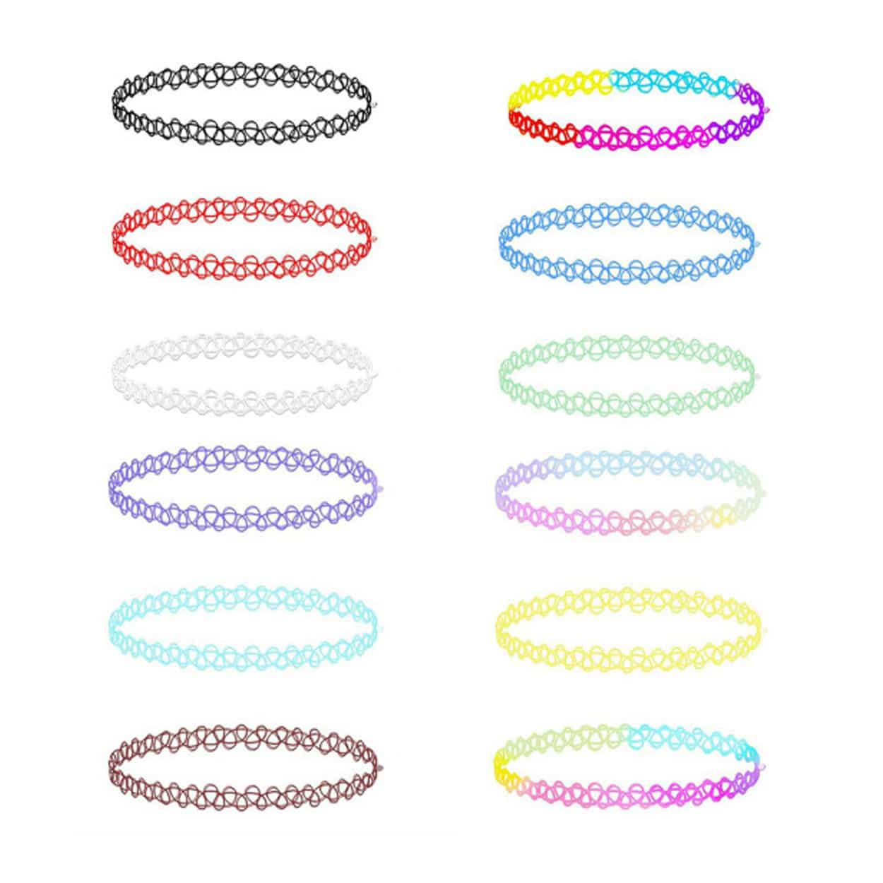 Chokerhalsband i storpack för dig som vill kunna variera accessoar efter outfit. Setet innehåller 12 stretchiga chokers som träs över huvudet och sitter nära halsen utan spänne. Den smala, spetsliknande utformningen ger ett lätt uttryck och fungerar både ensam och tillsammans med andra halsband. Passar för vardag, fest och som enkel detalj i lager på lager-styling. Praktiskt val för dig som vill ha flera alternativ till ett och samma smyckesval.