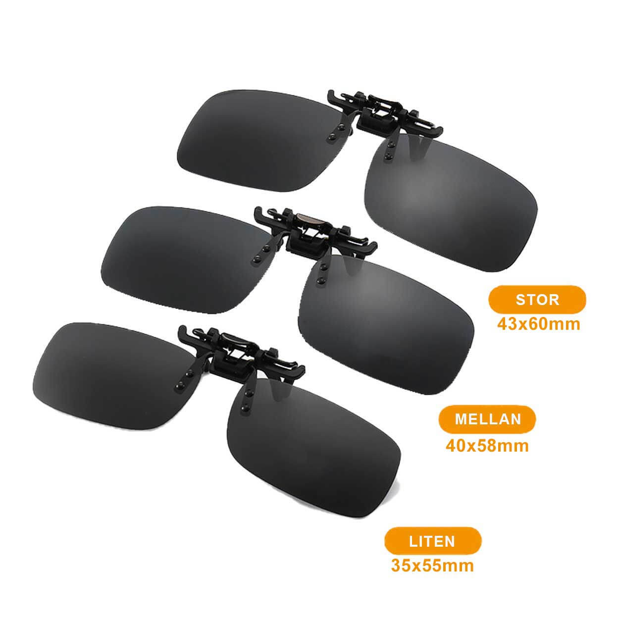 Clip-on solglasögon – fästs på glasögon – polariserad resinlins, UV400, CE