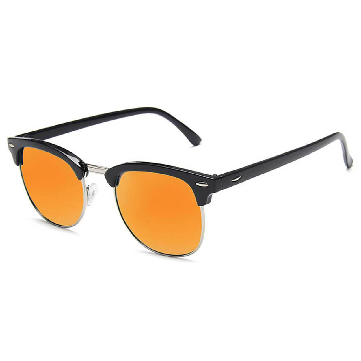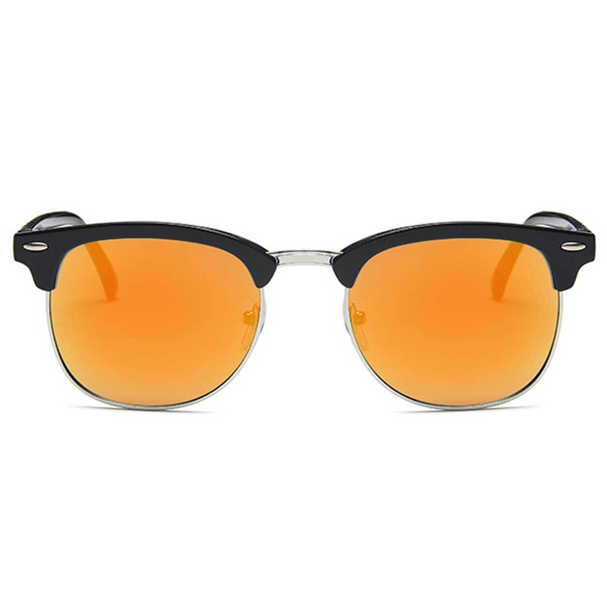 Clubmaster-solglasögon för herr med resinlinser och UV400-skydd som blockerar både UVA och UVB. Halvbågen i metall ger en stabil känsla och håller formen vid daglig användning. Spegelglaset minskar bländning och gör det enklare att se i starkt ljus. Passformen är anpassad för normal ansiktsbredd och glasögonen är lätta att bära under längre stunder. Måtten gör dem smidiga för pendling, bilkörning och utomhusaktiviteter när ögonen behöver skydd.