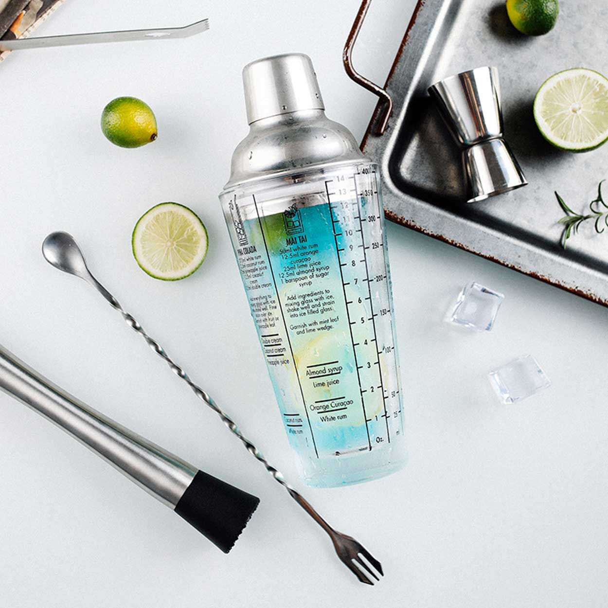 Tryckta måttmarkeringar gör att shakern även fungerar som mätkärl, vilket minskar behovet av separata barverktyg. För bästa resultat: fyll enligt markeringarna, tillsätt is och skaka tills behållaren känns kall. Sila vid behov innan servering.