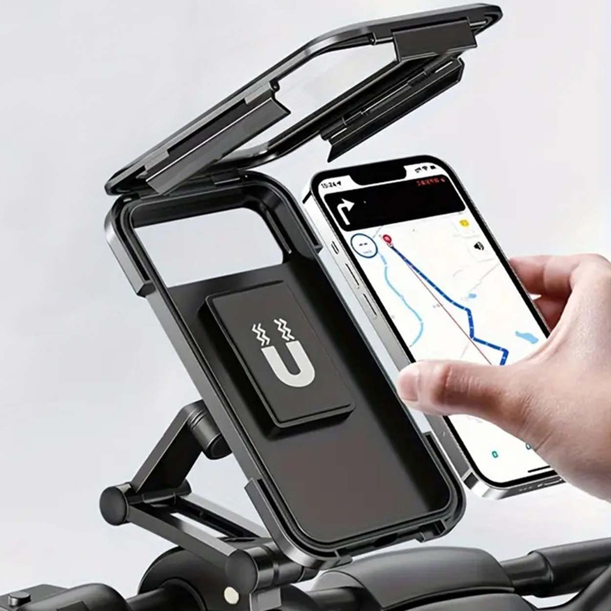 Vattentät mobilhållare för cykel som ger en stabil plats för telefonen på styret. Konstruktionen skyddar mot fukt, damm och stötar, vilket gör den användbar vid pendling och längre turer. Hållaren är roterbar i 360° så att skärmen kan vinklas för navigering eller musik i stående eller liggande läge. Passformen är justerbar och rymmer telefoner upp till 17 x 8 cm. Montering sker snabbt med medföljande insexnyckel och monteringsdelar, och adapter medföljer för olika rördiametrar.