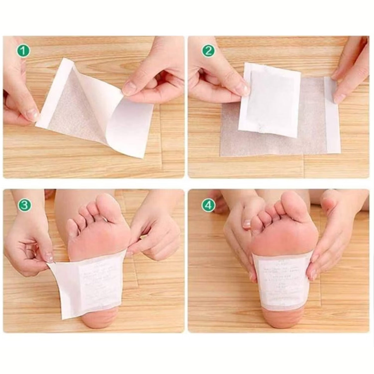 Detox fotplåster är fotpatchar som appliceras på fotsulan före läggdags och används under natten i 6–10 timmar. Formulan bygger på växtextrakt, mineraler och vitamin C och är framtagen för skonsam hudkontakt. Plåstren används som en rutin under en kur, vanligtvis dagligen i 2 veckor upp till 2 månader beroende på behov. Endast för extern användning. Använd inte på skadad eller irriterad hud och undvik användning under graviditet.