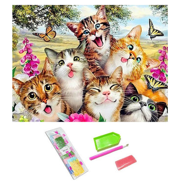 Diamantmålning / diamond painting – roligt kattmotiv – akryldiamanter, komplett set
