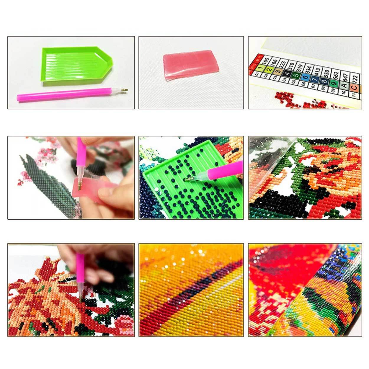 Diamanttavla för diamond painting som låter dig skapa ett motiv genom att placera små numrerade plastdiamanter på en självhäftande duk. Setet innehåller duk, diamanter och verktyg så att du kan komma igång direkt. Diamanterna hälls i ett tråg med upphöjningar som hjälper dem att lägga sig åt rätt håll, vilket gör dem enklare att plocka upp med pennan. Lim ingår för att ge bra fäste under arbetet. Färdigt motiv kan ramas in eller hängas upp.