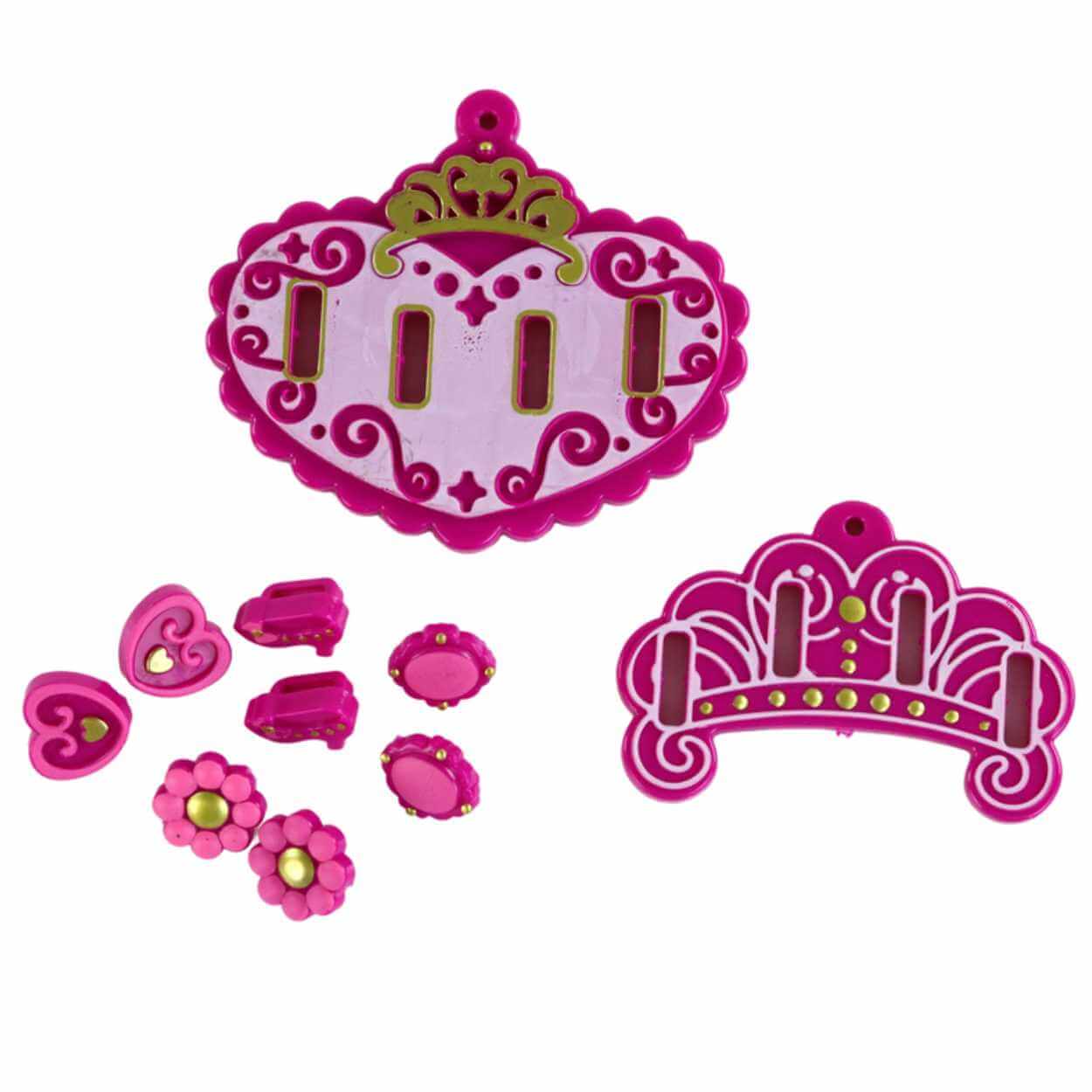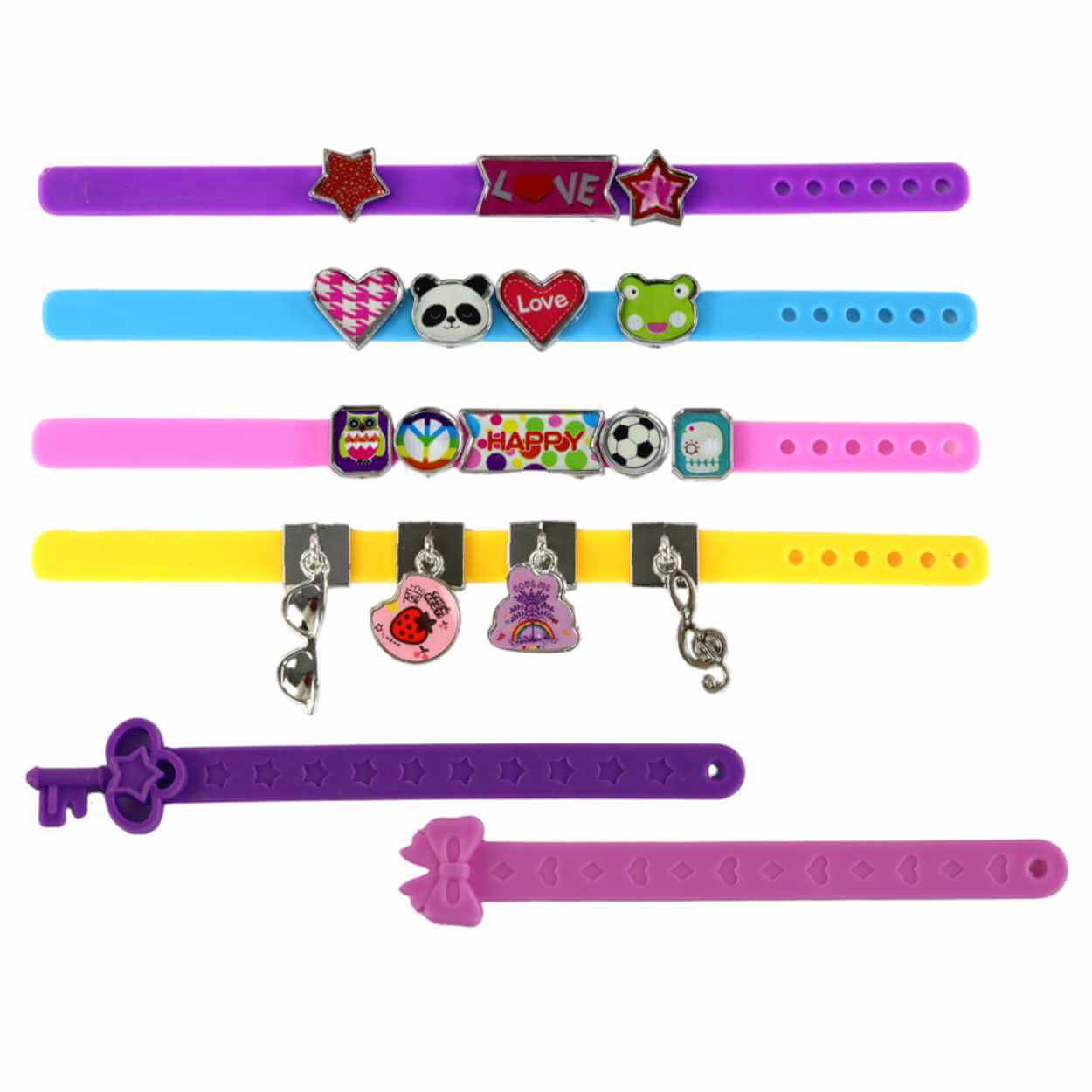 Klistermärkena kan kombineras med de medföljande formerna för att skapa tydliga motiv på hängsmycken, vilket gör det lätt att variera uttrycket utan verktyg. Remmarna med snäppstängning gör att armbanden snabbt kan tas av och på, vilket passar bra när flera smycken skapas och byts under pysslet.
