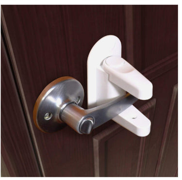 Dörrstopp / barnlås – låser dörrhandtag – 3M självhäftande montering, knappöppning