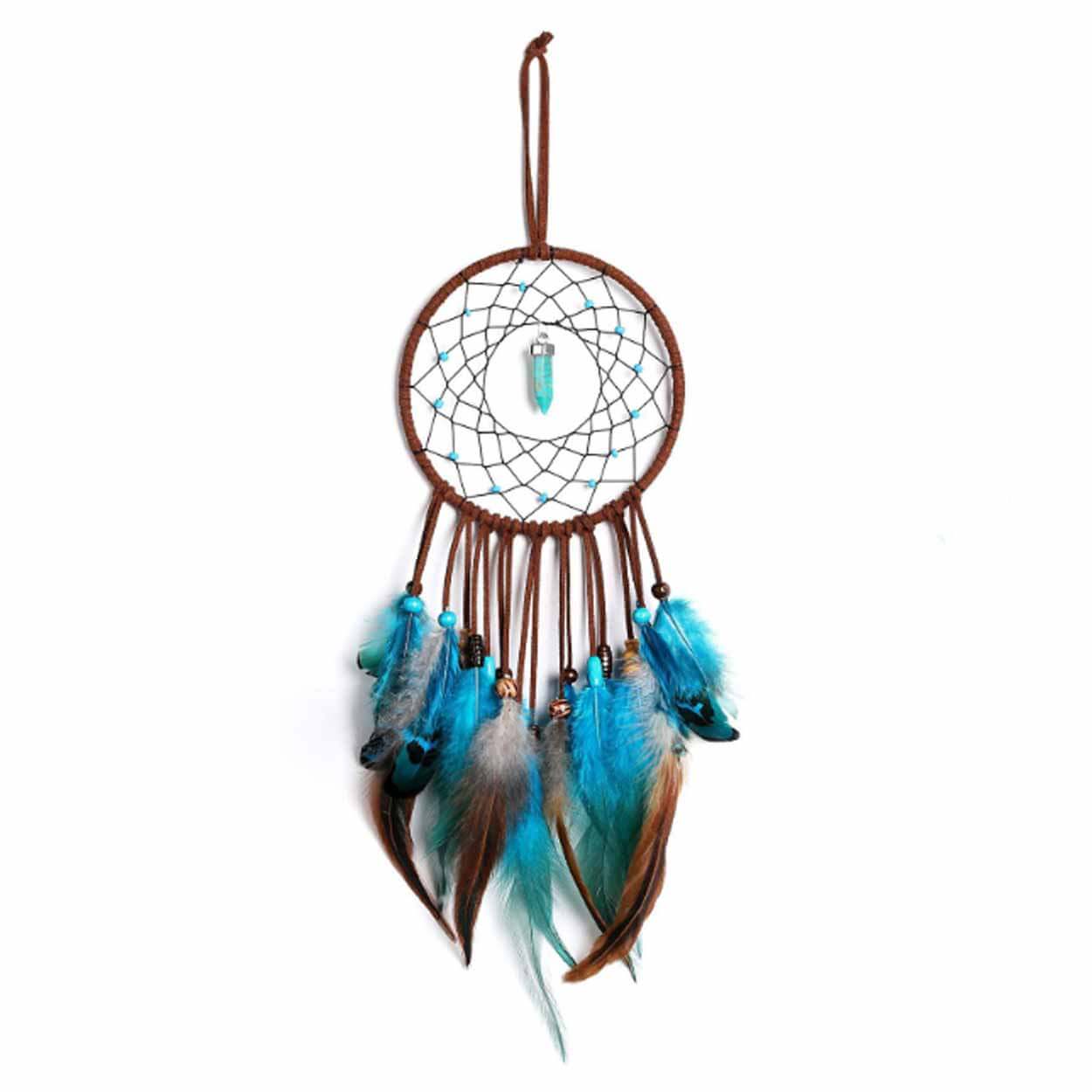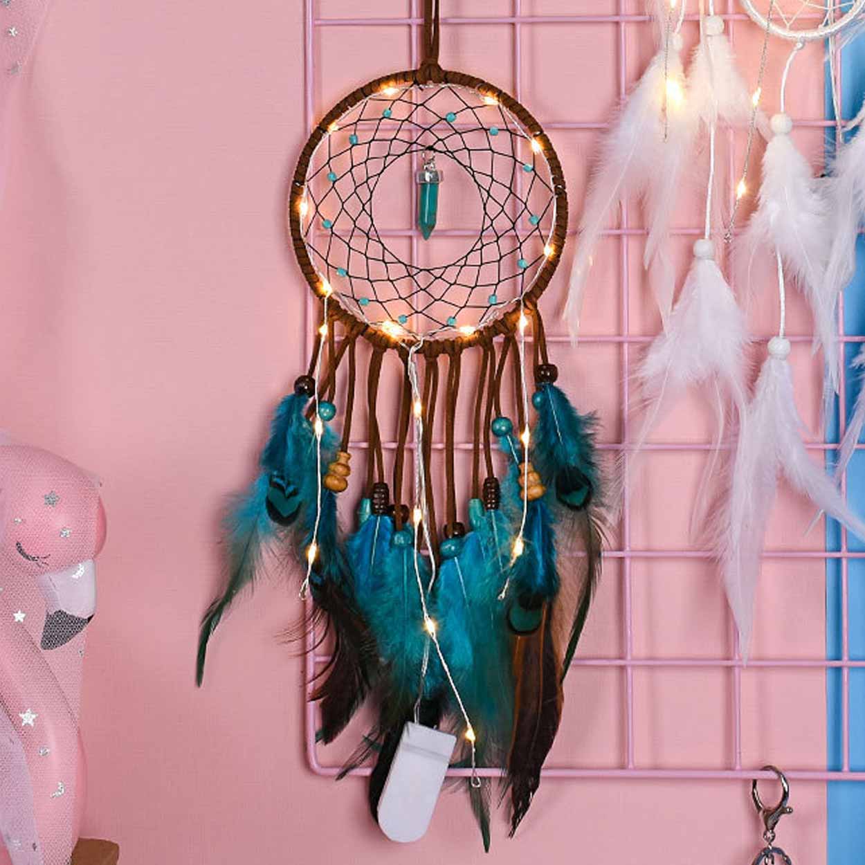 Drömfångare / väggdekor – dekorativ belysning – virkad, fjädrar