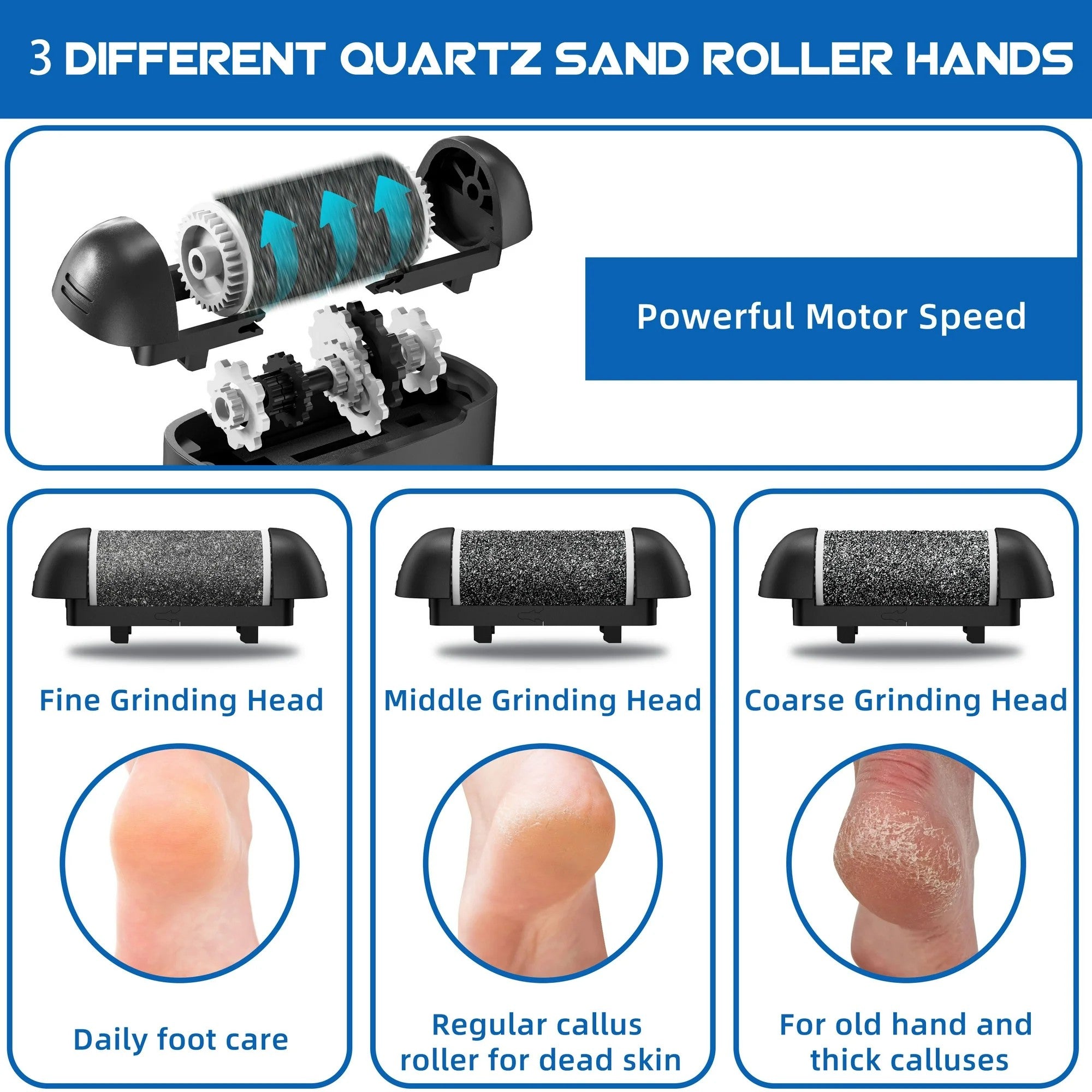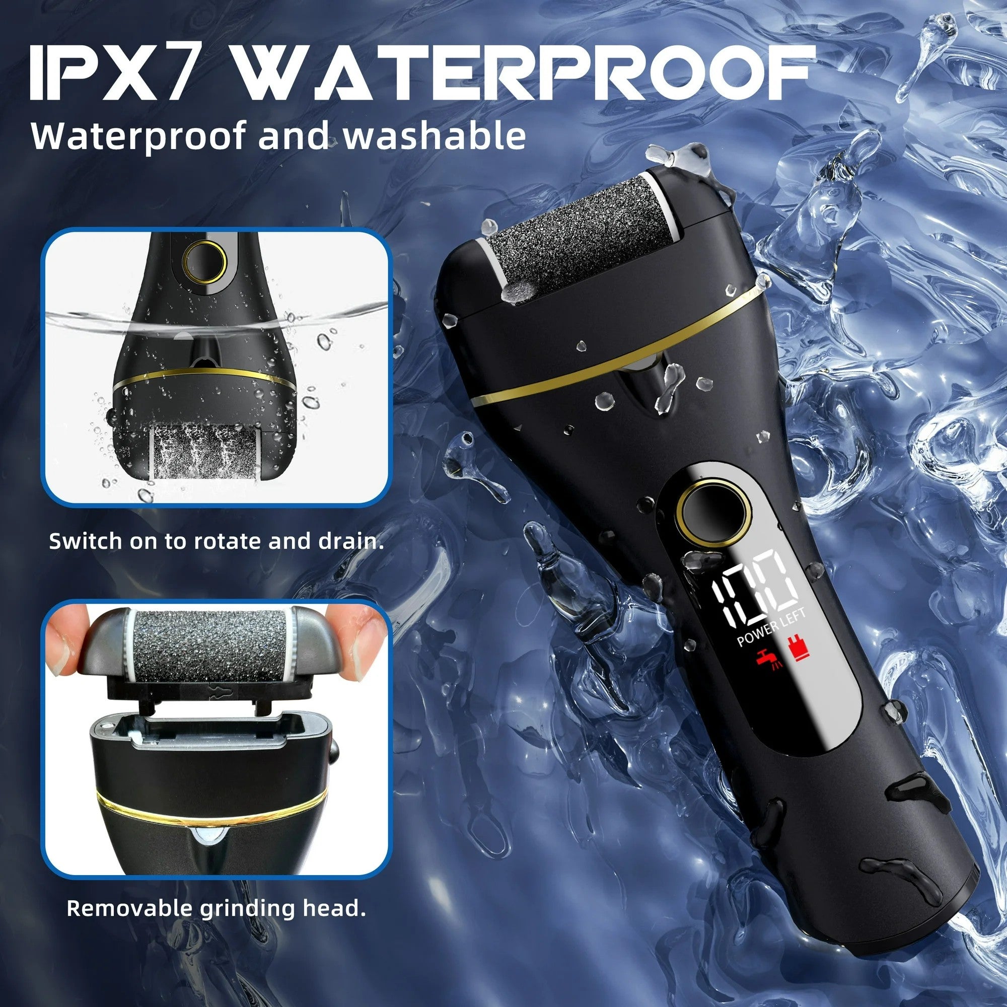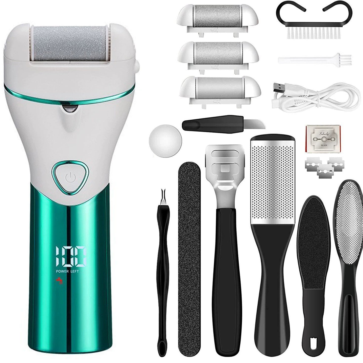 Elektrisk fotfil / fotvård – hård hud borttagning – 2 hastigheter, USB-laddning, batteridisplay