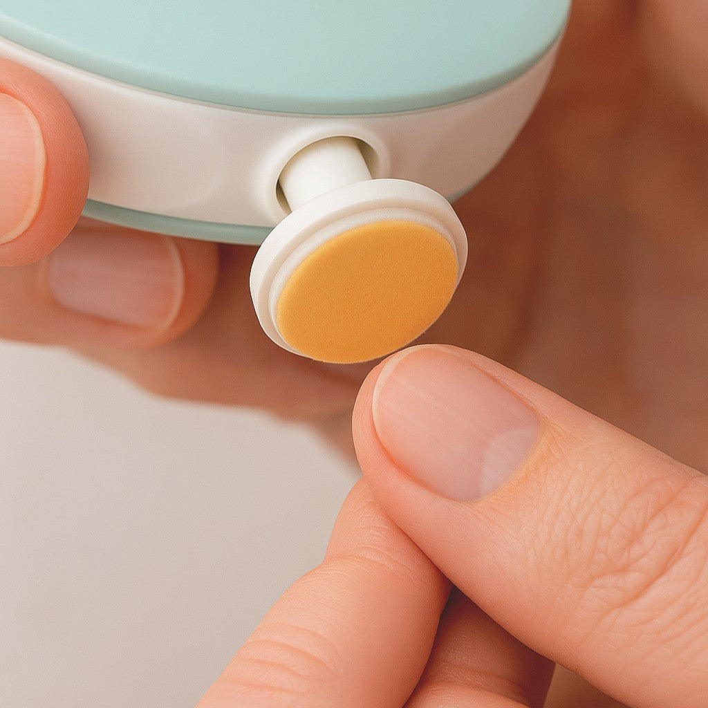 Elektrisk nagelfil som ger skonsam nagelvård för nyfödda, barn och vuxna. Filen hjälper till att minska risken för rivsår genom att forma och polera naglar utan vassa kanter. Sex utbytbara poleringshuvuden gör det enkelt att anpassa filningen efter ålder och behov, från spädbarn till vuxen. Konstruktionen i ABS-plast är lätt att hålla i och passar för snabb nagelvård hemma. Nagelfilen drivs av ett AAA-batteri och levereras med filen samt sex poleringshuvuden för en komplett start.