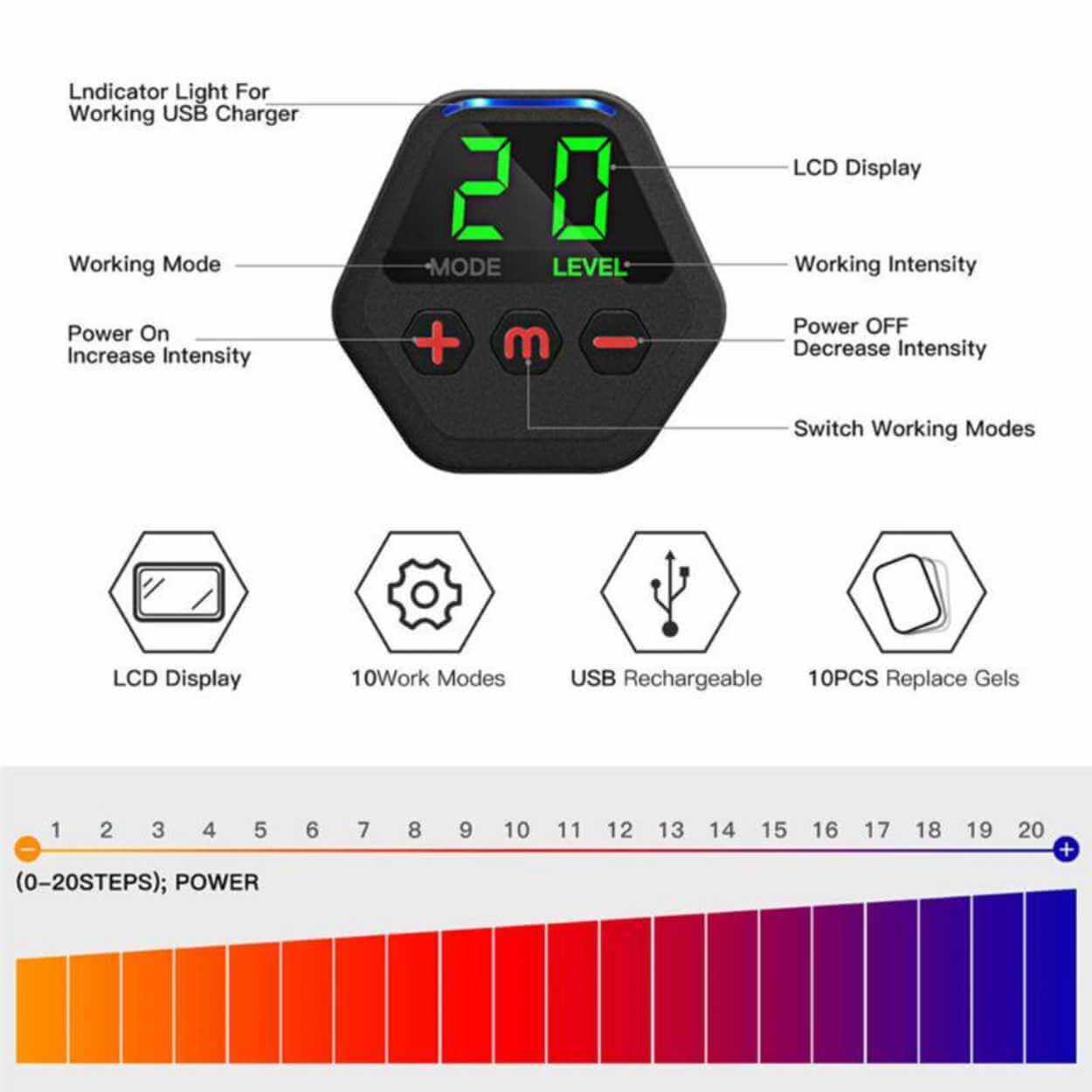 EMS muskelstimulator / EMS tränare – muskelstimulering hemma – 10 lägen, 20 nivåer, USB laddning