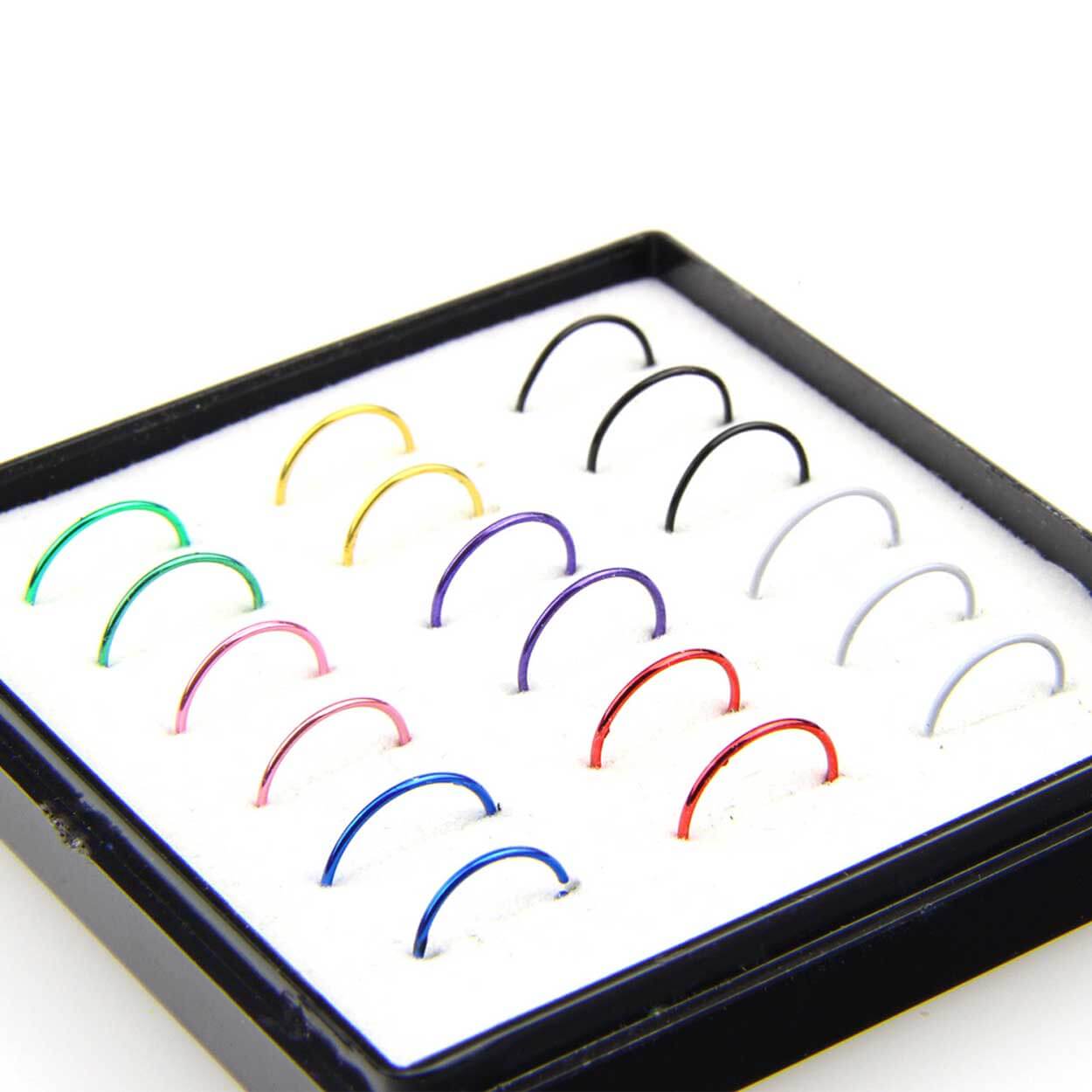 Fake piercing ringar / näsring / septum – utan hål – 18 st, 8 x 1,8 mm