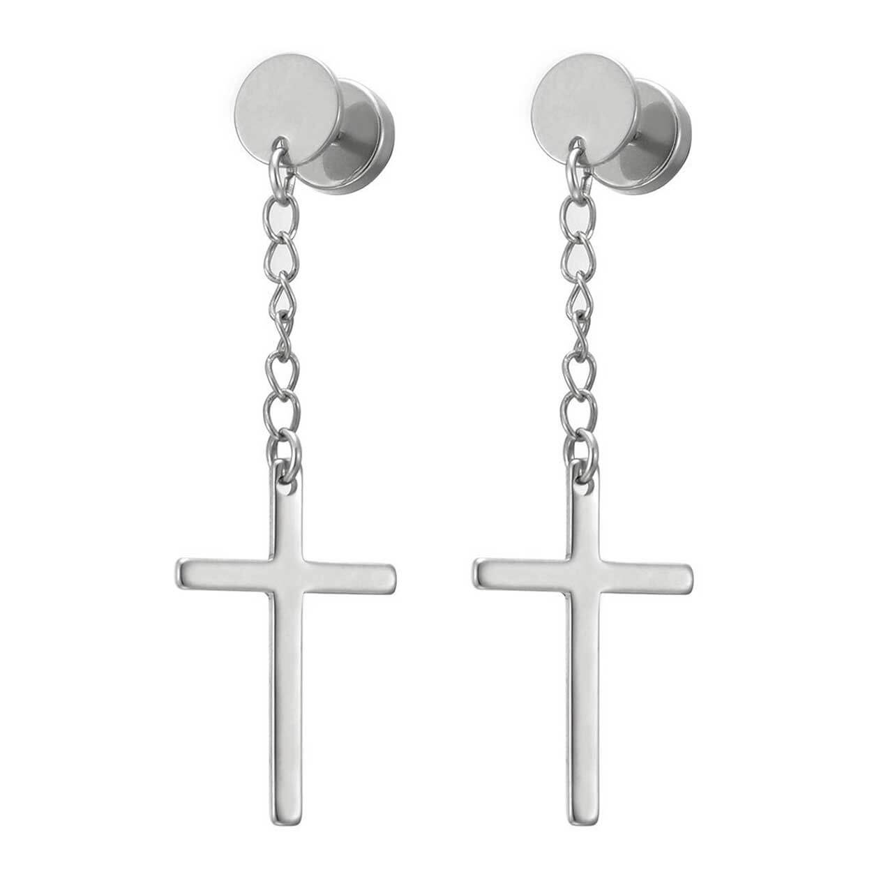 Fake plug för öron Hängande kors Stål 316L Parförpackat