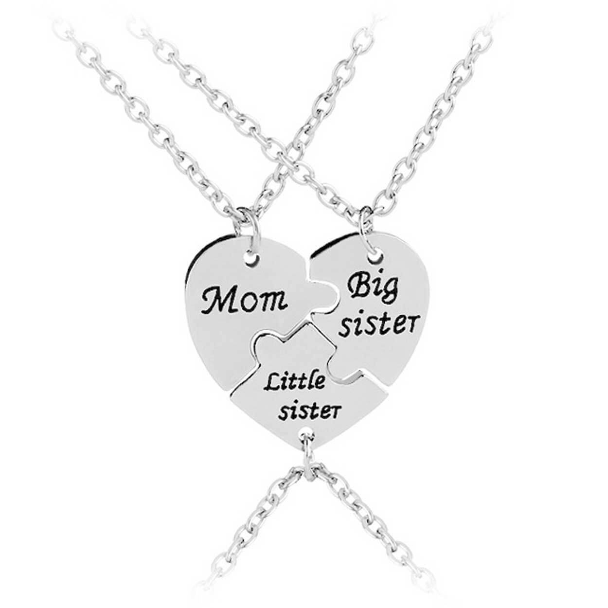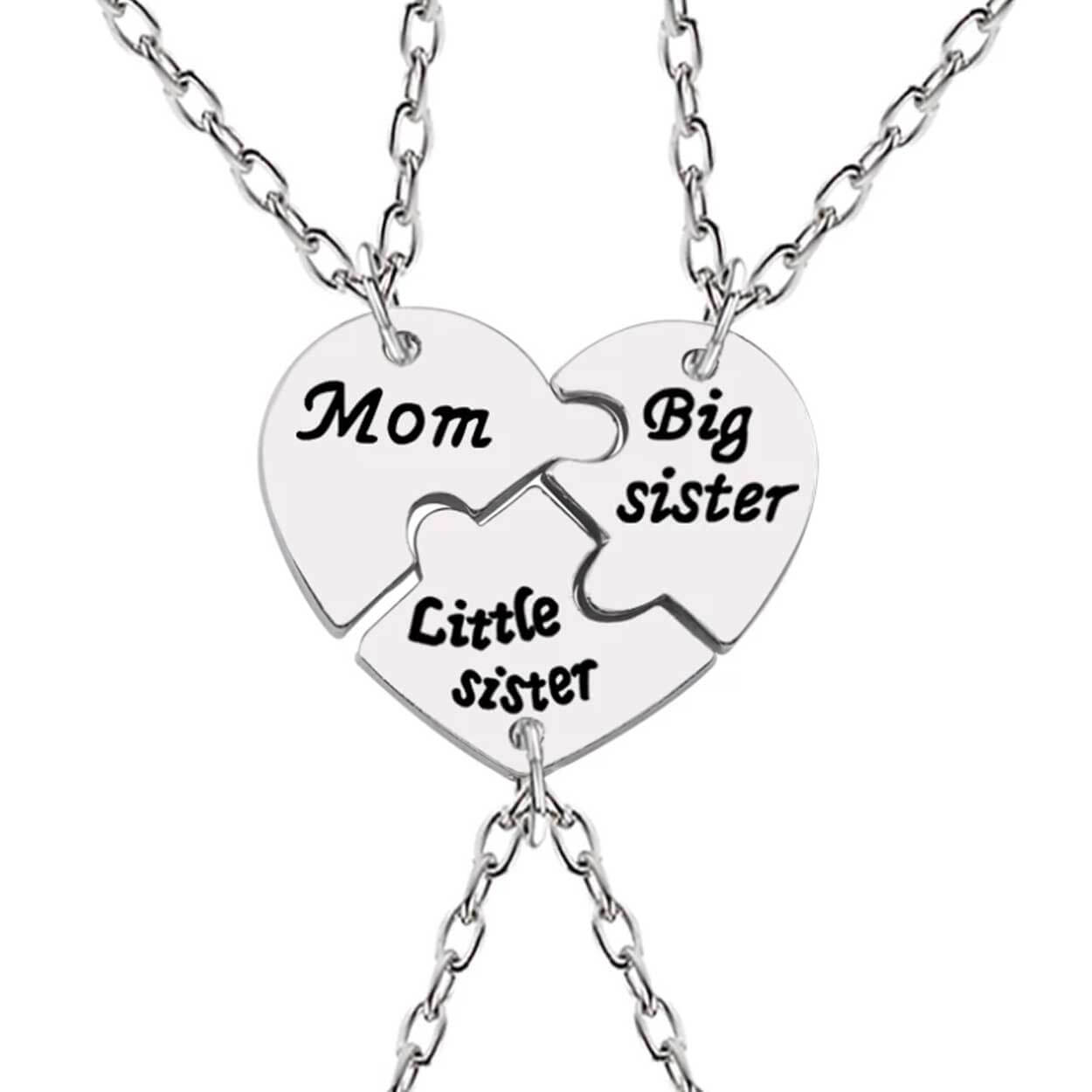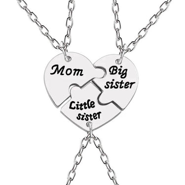 Familjehalsband med brythjärta i tre delar, gjort för att delas mellan mor, syster och dotter. Varje person bär sin del av hjärtat och tillsammans bildar delarna en helhet. Berlocken har en kompakt storlek på 22 x 25 mm, vilket gör den enkel att bära till vardags. Halsbandet är tillverkat i en tålig legering och passar som vänskapssmycke eller familjesmycke när ni vill ha en gemensam symbol som följer med i vardagen.