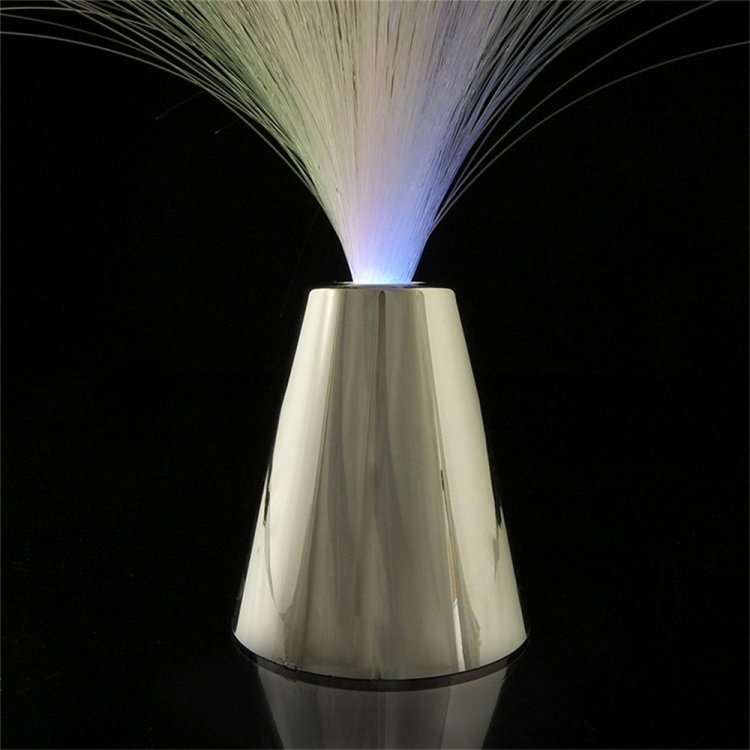 Fiberoptisk LED-lampa som skapar stämningsfull belysning med skiftande färger. Ljuset sitter i basen och leds upp genom fiberoptiska spröt för en mjuk, jämn ljuseffekt som blir extra tydlig när övrig belysning är släckt. Lampan drivs av 3 AAA-batterier, vilket gör den enkel att placera där du vill utan sladdar och att flytta mellan rum. Passar som diskret kvällsbelysning eller som nattlampa i sovrum och barnrum. Tillverkad i plast och cirka 30 cm hög.