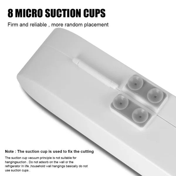 Foliedispenser som gör det enkelt att dra ut och skära av plastfolie eller aluminiumfolie med ett enda drag. Folien placeras på en rörlig rulle som ger jämn matning och minskar risken för veck och fastklibbning. Skärbladet ger en rak kant som underlättar vid inpackning och förvaring av mat. Sugkopparna ger stabil montering på släta ytor som kakel, glas eller bänkskiva, så att dispensern står still när du arbetar. Passar rullar upp till 31 cm bredd.