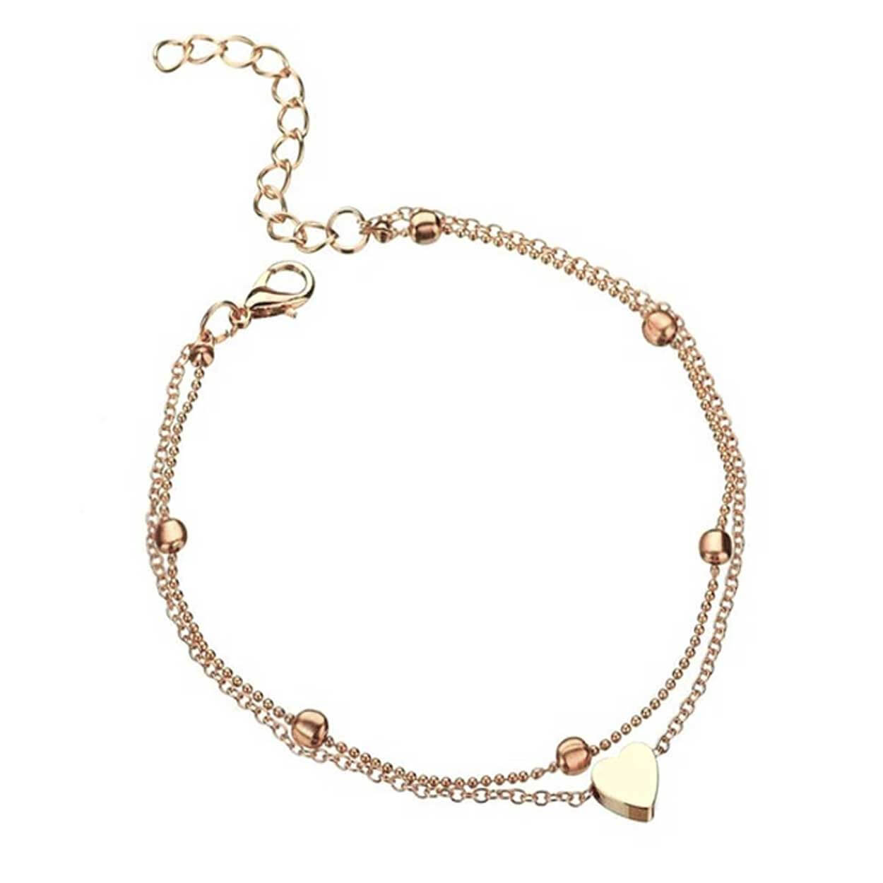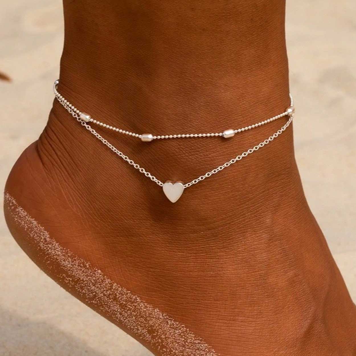 Fotlänk / ankellänk – dubbla kedjor, hjärtberlock – justerbar längd 25 cm