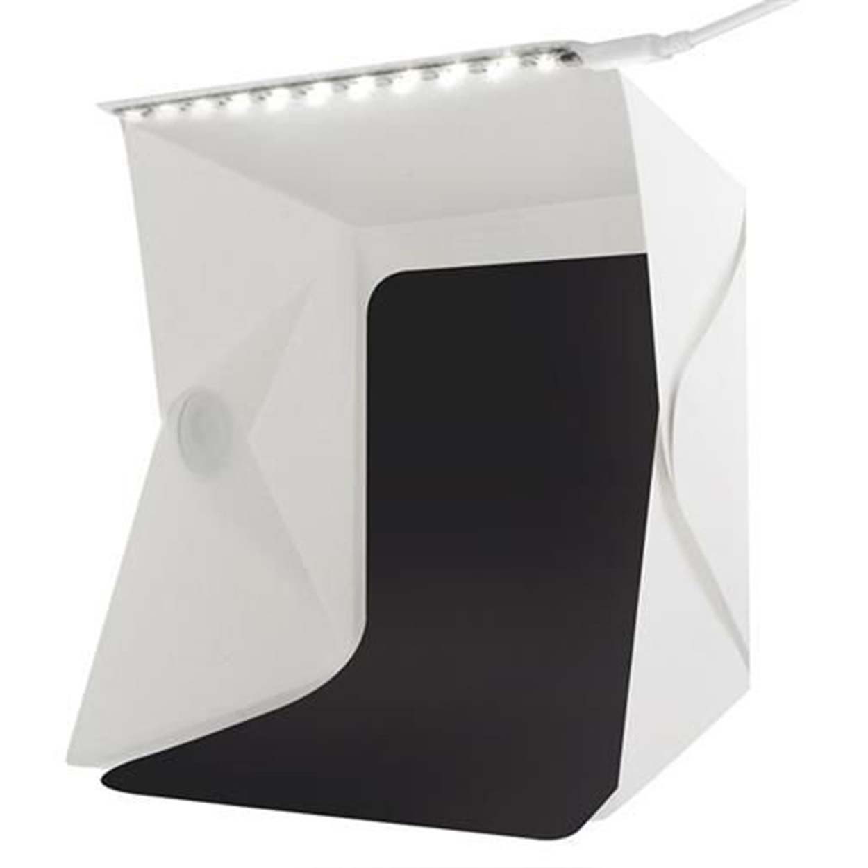 Tingelo Hemelektronik Foto, video & övervakning Studioutrustning Fototält / ljustält – skugglös produktfoto – 20 LED, USB, vit svart bakgrund