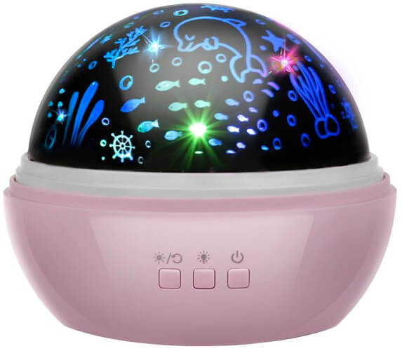 Galaxy nattlampa projektor skapar projicerat ljus på väggar och tak och fungerar även som sänglampa. Två utbytbara motivfilter gör det enkelt att växla mellan stjärnhimmel och undervattensvärld. Den roterande kupolen sprider ljusvågor jämnt för en lugnare miljö vid läggdags. Fyra ljuslägen ger möjlighet att anpassa uttrycket efter rum och behov. Strömförsörjning sker via USB eller 4 AAA-batterier (ingår ej). USB-kabel och två filter medföljer.