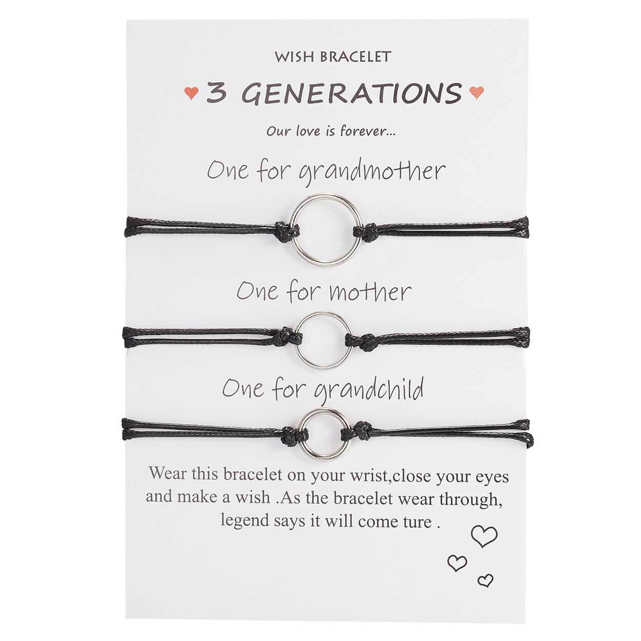 Generationsarmband / vänskapsarmband – 3 generationer – justerbar längd 16–28 cm