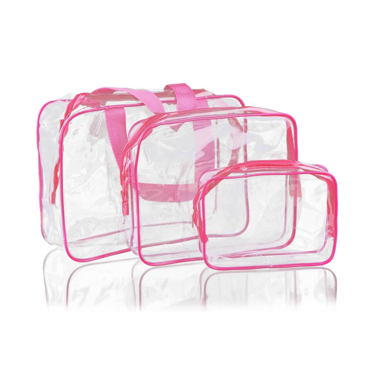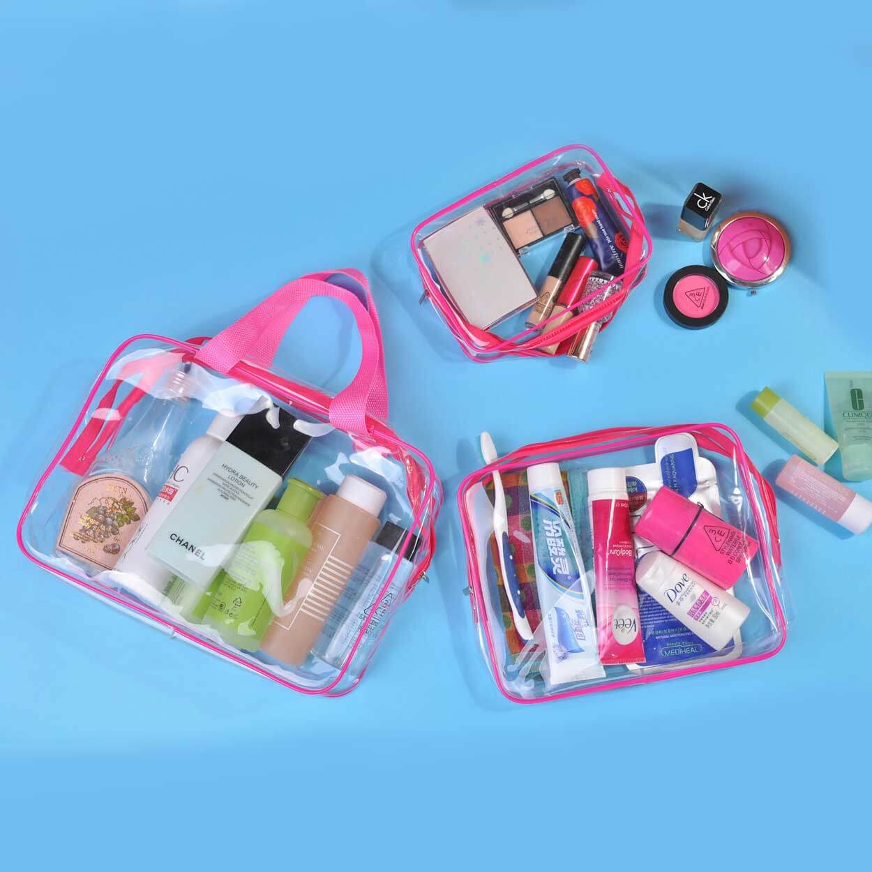 Genomskinlig sminkväska / necessär – överblick i resväskan – 3 delar, handtag
