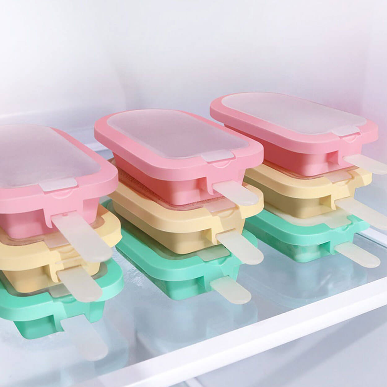Glassform för hemmagjord popsicle som gör det enkelt att frysa egna glasspinnar av juice, saft, yoghurt eller grädde. Formen är tillverkad i BPA fri silikon som är flexibel och hjälper glassen att släppa smidigt. Locken gör att formarna kan staplas i frysen för mer ordning och mindre spill. Två återanvändningsbara pinnar ingår så att varje glass får ett stabilt grepp. För enklare urtagning kan formen spolas kort med ljummet vatten innan glassen tas ut.