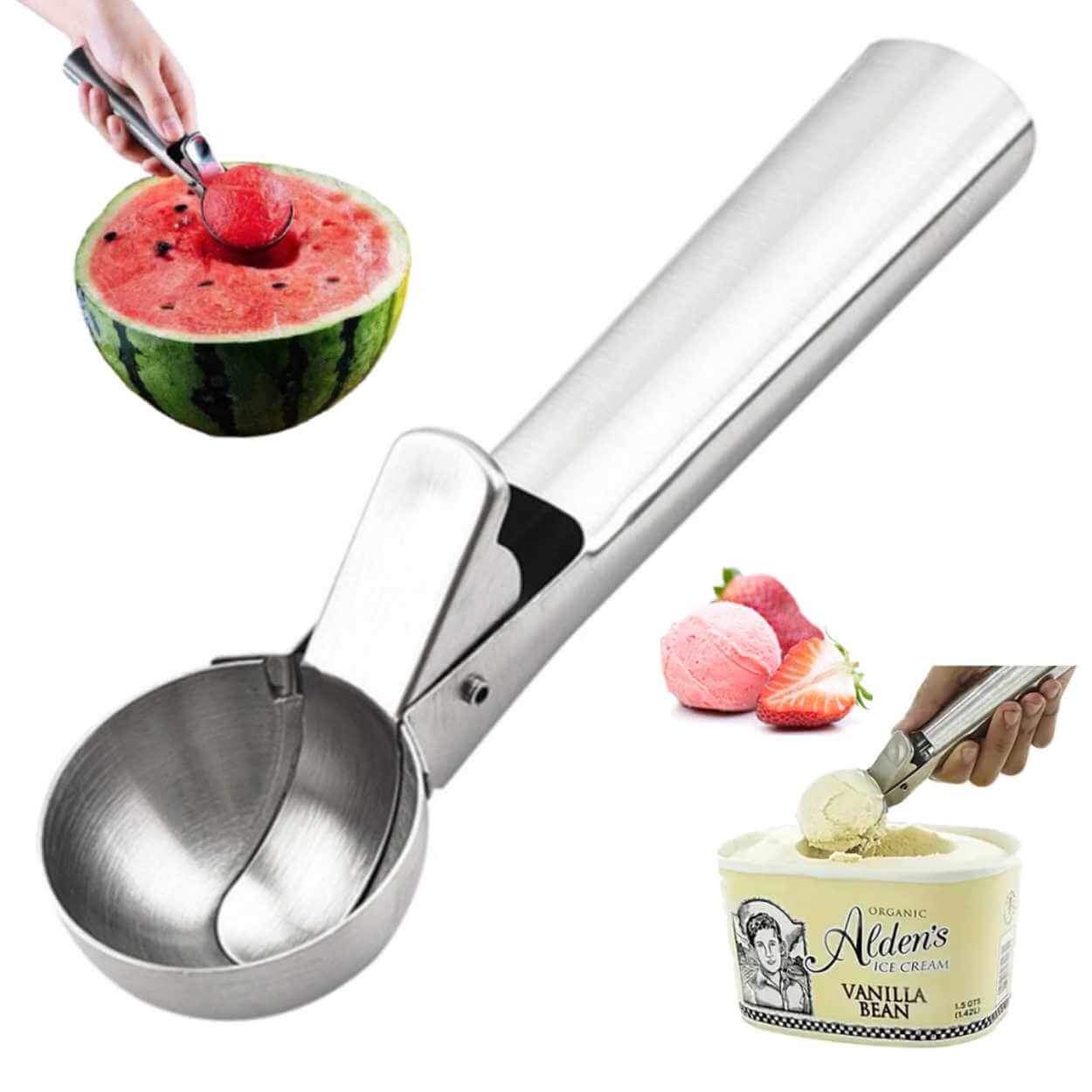 Tingelo Hushåll & Kök Köksredskap Handredskap för matlagning Glasskopa / glassked – formar glasskulor – rostfritt stål, 1-klick ejektor