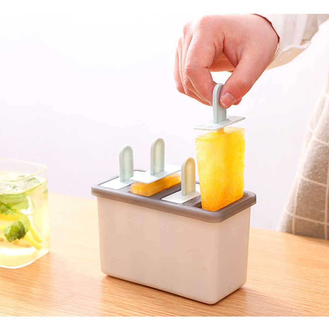 Glasspinneform för hemmagjorda glasspinnar. Formen fylls enkelt med juice, saft eller andra blandningar och ger 4 glasspinnar per omgång. BPA-fri plast gör den lämplig för återkommande användning i frysen. Varje fack har en tillhörande pinne som gör det lätt att ta ut och servera glassen. För smidigare urtagning kan formen spolas kort i ljummet vatten så att glassen släpper snabbare utan att gå sönder.
