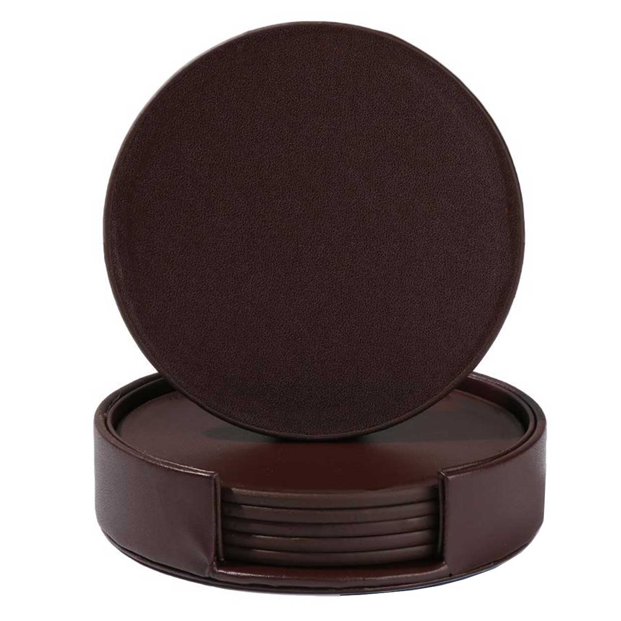 Glasunderlägg / dryckesunderlägg – bords skydd mot spill, värme – PU-läder, 6 st, hållare
