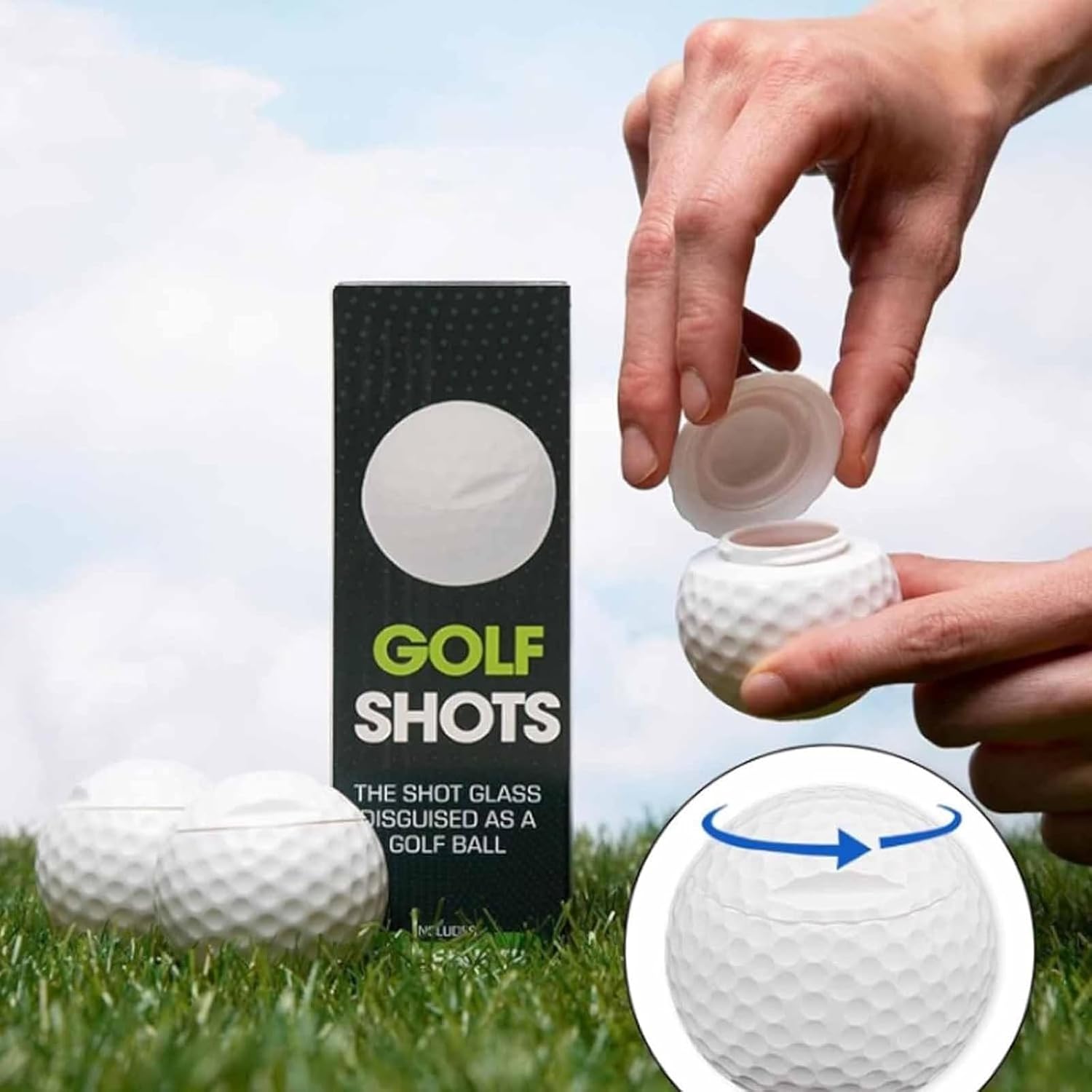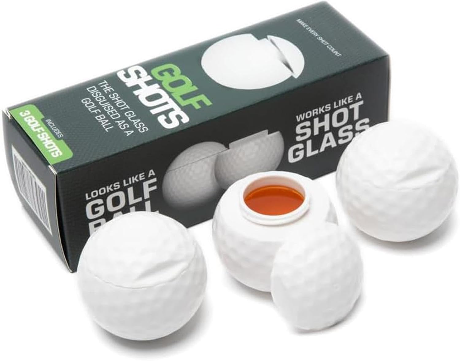 Golfboll shotglas är ett set med tre shotglas formade som golfbollar. Den präglade ytan ger ett tydligt golfutseende som passar i hemmabaren, klubbhuset eller vid temafester. Varje glas rymmer cirka 40 ml, vilket gör dem lämpliga för shots och provsmakningar. Glasmaterialet ger en stabil känsla i handen och är enkelt att rengöra efter användning. Setet fungerar även som en present till golfintresserade som vill ha en rolig detalj till serveringen.