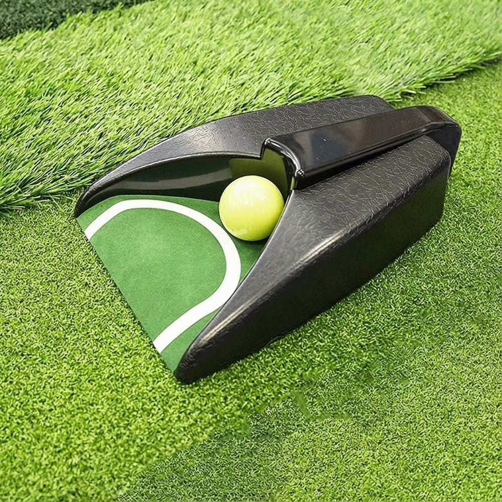 Automatisk golfbollsåterförare för puttträning som fångar upp bollen och returnerar den tillbaka efter varje putt. Batteridriften ger ett jämnt träningsflöde så att fler repetitioner kan göras utan att gå och hämta bollen. Enheten har styrande sidoväggar som leder bollen in i returkanalen och en integrerad riktlinje på puttytan som hjälper dig hålla en konsekvent startlinje. Halksäker undersida ger stabil placering på puttingmatta, heltäckningsmatta eller konstgräs på en plan yta.