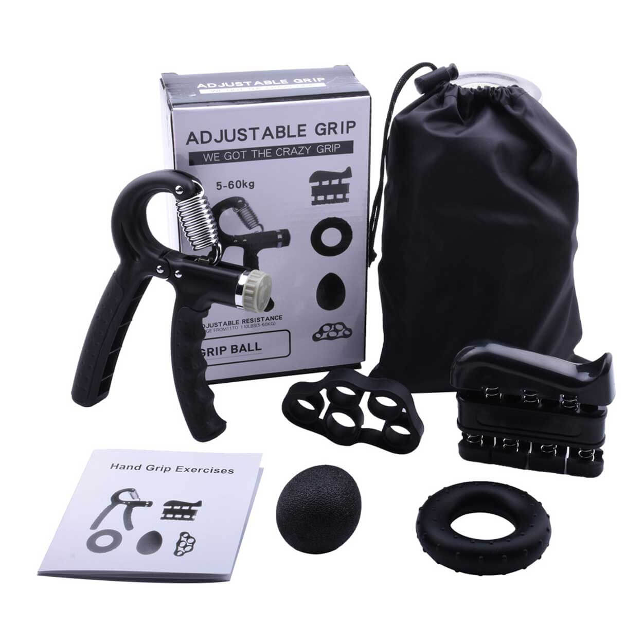 5 redskap i set 5–60 kg motstånd Tränar fingrar Tränar underarm Lätt att ta med