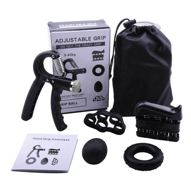 Grepptränare i 5 delar som hjälper till att bygga styrka i händer, fingrar, handleder och underarmar. Setet innehåller en justerbar handgripper med 5–60 kg motstånd för progressiv träning, en grip ring och en stressboll för skonsam men effektiv belastning, samt en grip master där fingrar kan tränas separat eller tillsammans. Finger stretcher kompletterar genom att stärka fingrarnas extensorer och förbättra rörlighet. Passar både styrketräning och rehabilitering när grepp och fingerkontroll behöver utvecklas.