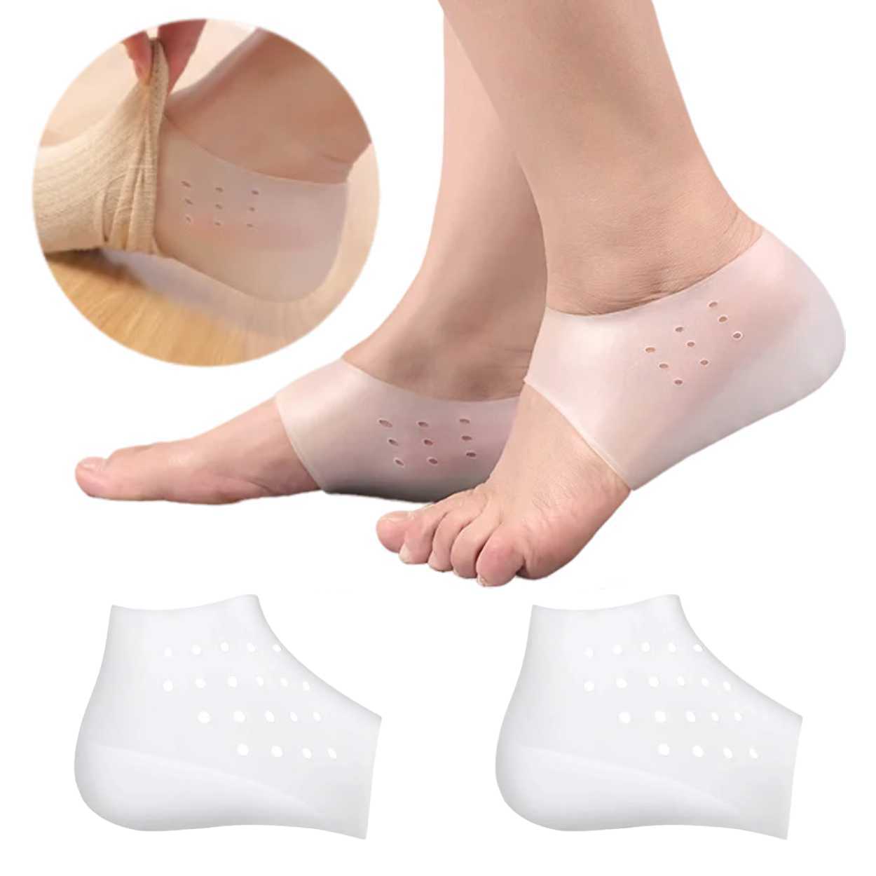 Hälinlägg som ger en diskret höjdökning på 3,5 cm och kan bäras i strumpan för stabil passform i skon. Konstruktionen kombinerar en elastisk silikonstrumpa med en fast integrerad gelkudde, vilket minskar risken att inlägget glider jämfört med separata häldynor. Den mjuka TPE-gelen ger stötdämpning och avlastning vid gång och stående. Slät yta gör inlägget lätt att hålla fräscht och rengörs enkelt med varmt vatten och tvål.