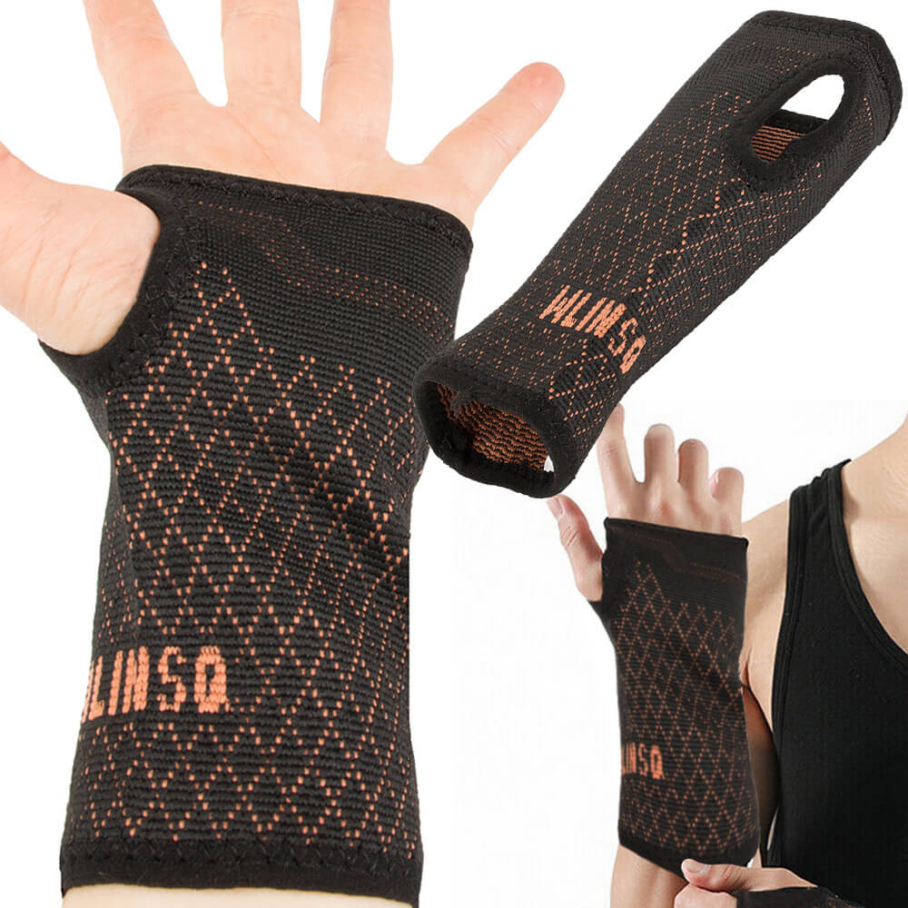 Tingelo Hälsa & Skönhet Stöd & rehabilitering Handledsstöd Handledsstöd / handledsskydd – stabiliserande kompression – kopparfiber, tumhål, universal storlek