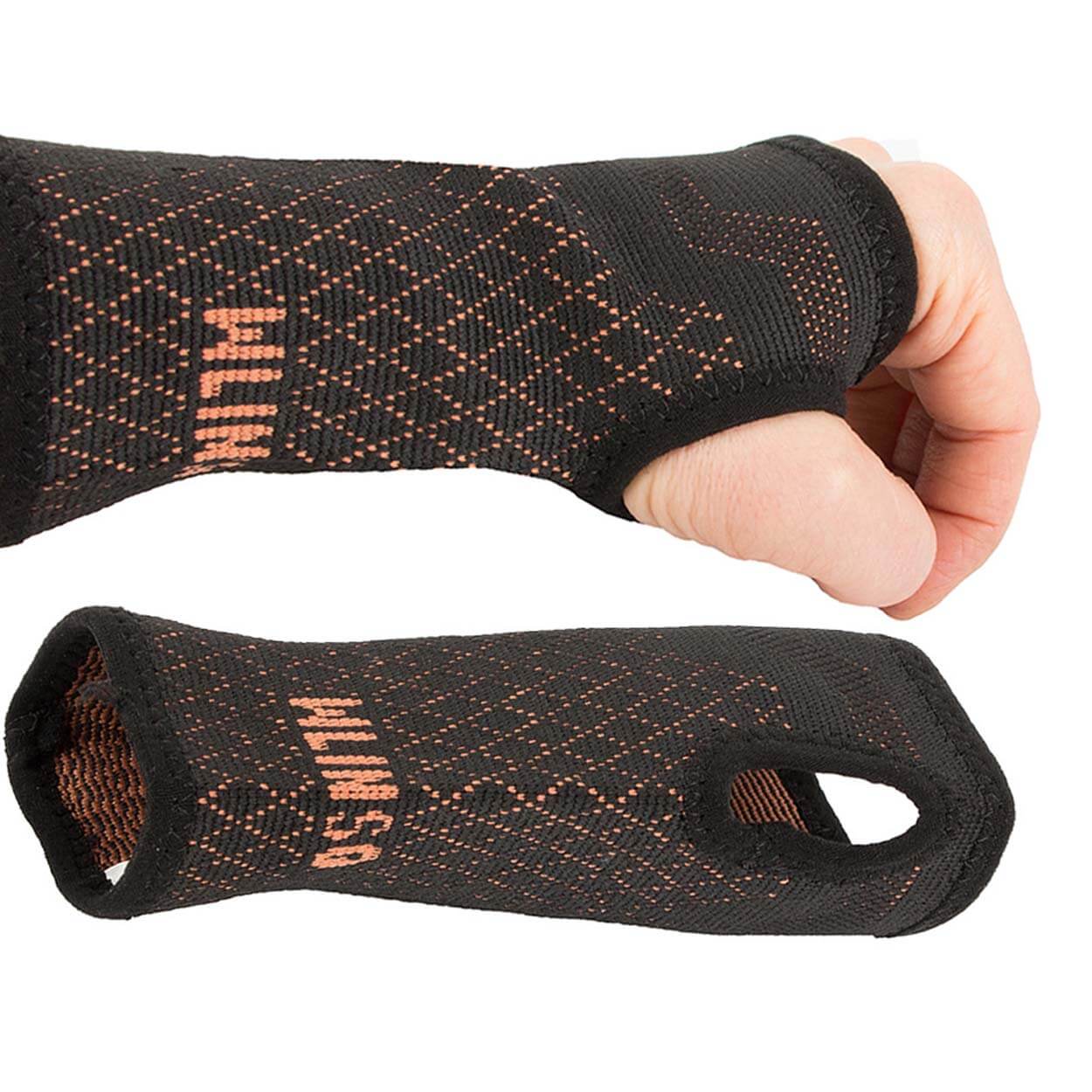 Handledsstöd / handledsskydd – stabiliserande kompression – kopparfiber, tumhål, universal storlek