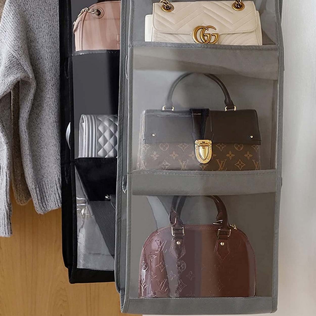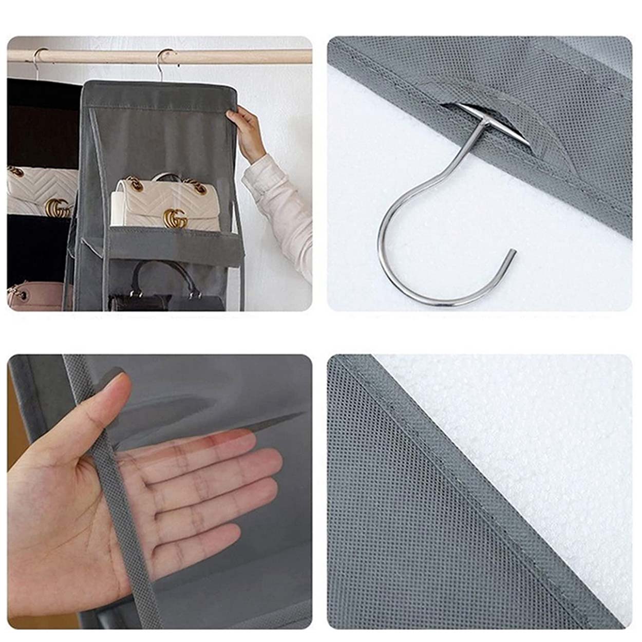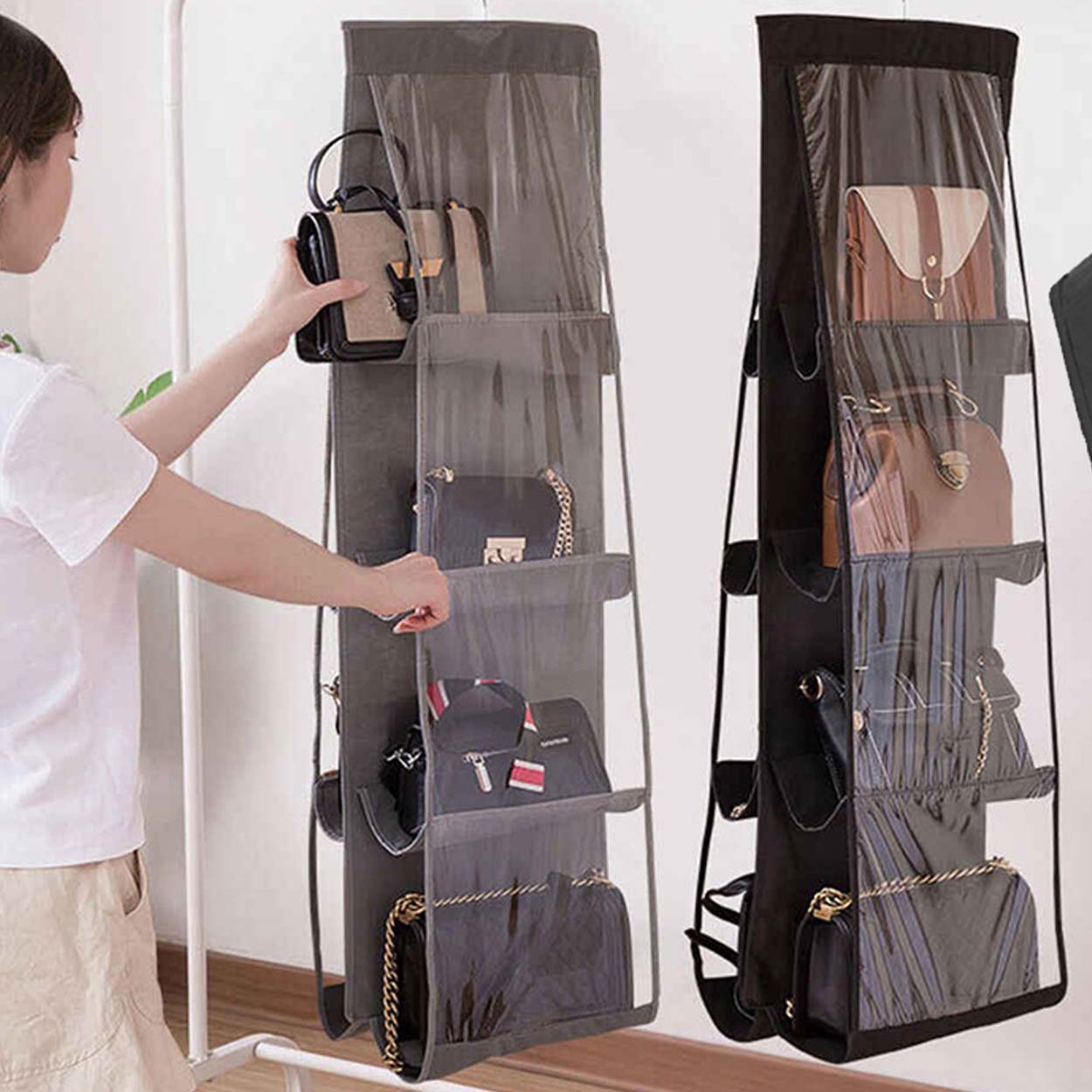 Hängande väskhylla / handväskeorganisatör – garderobsförvaring – 8 fickor, metallhängare