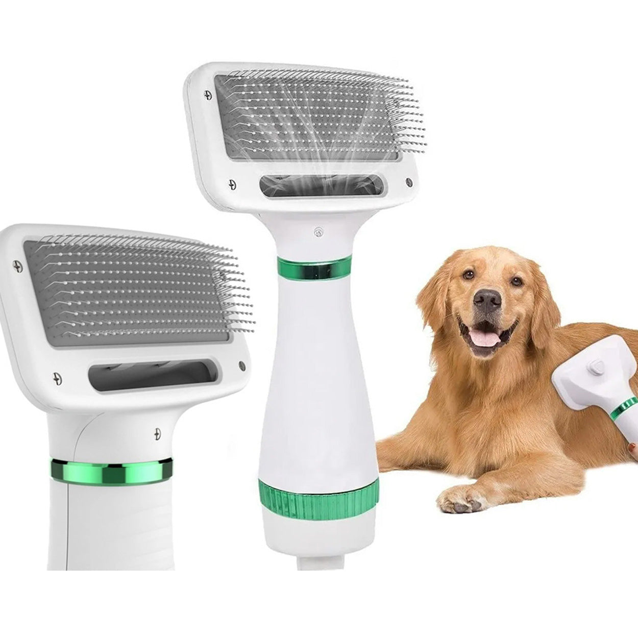 Hårtorksborste för husdjur som kombinerar torkning och borstning i ett och samma verktyg. Produkten används efter bad eller blöta promenader för att snabbare få pälsen torrare samtidigt som den kammas igenom och reds ut. Det gör pälsvården mer effektiv och kan minska tiden som hunden behöver stå still. Passar både mindre och större husdjur och fungerar på flera pälstyper. Greppet är utformat för att vara lätt att hålla i vid regelbunden användning.