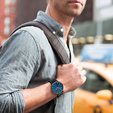 Ultratunn herrklocka med kvartsur för stabil tidhållning i vardagen. Boetten i rostfritt stål ger en tålig känsla och glaset skyddar urtavlan mot repor vid normal användning. Den låga profilen på 6,5 mm gör att klockan sitter bekvämt under skjortmanschetten och fungerar lika bra till arbete som till ledigare klädsel. Batteri ingår inte och behöver köpas separat. Klockan är inte vattentät och bör hållas borta från vatten.