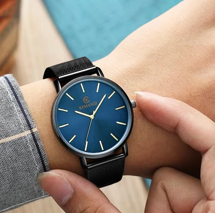 Herrklocka / kvartsur – ultratunn vardagsklocka – rostfritt stål, glas