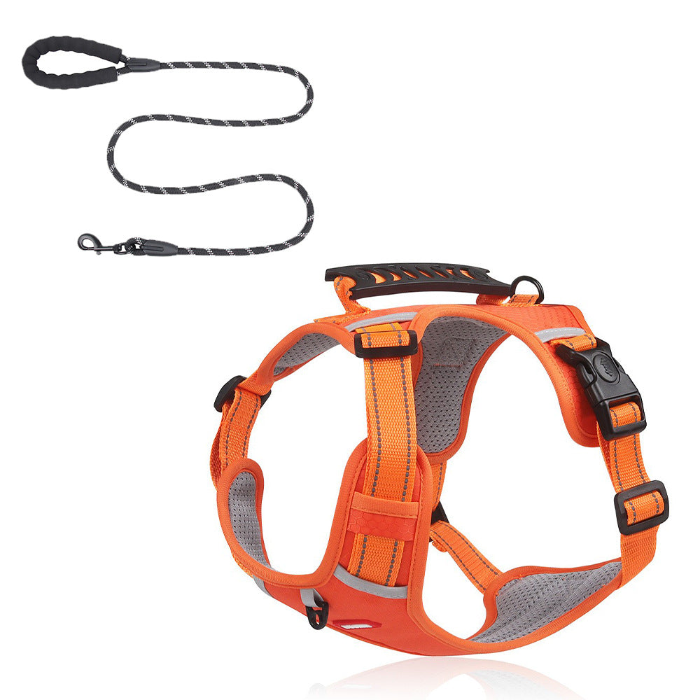 Justerbar hundsele i slitstarkt oxfordtyg som ger en bekväm och säker passform under promenader. Konstruktionen fördelar trycket över bröstet och minskar belastningen på halsen, vilket kan ge bättre kontroll och en mer behaglig gång för hunden. Insidan är mjuk och skonsam mot pälsen för att minska friktion vid rörelse. Remmarna kan justeras för att sitta stabilt på olika hundkroppar, och den låga vikten gör selen smidig att ta på och av i vardagen.
