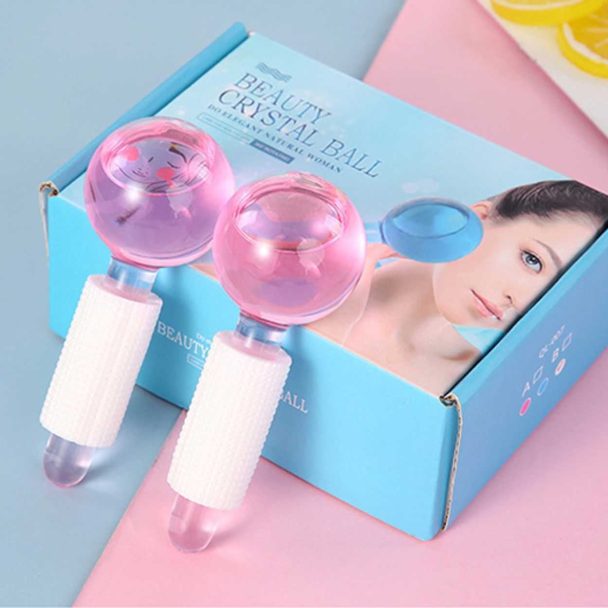 Ice globes / ansiktsroller – kylande massage – borosilikatglas, 2 st