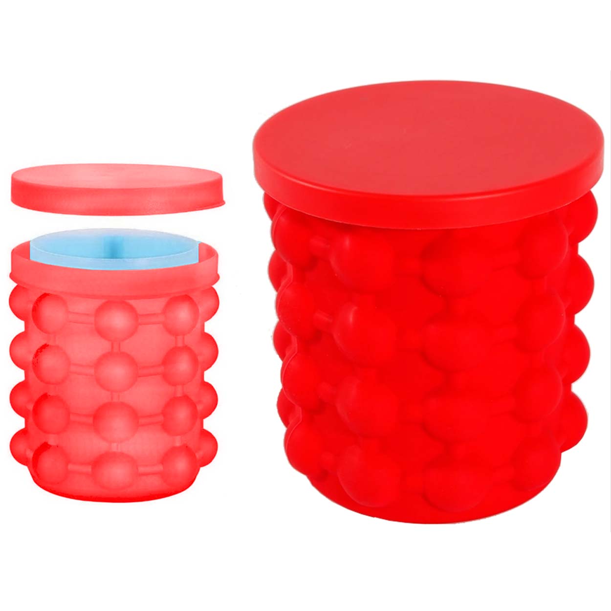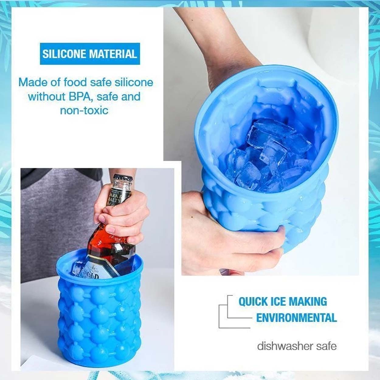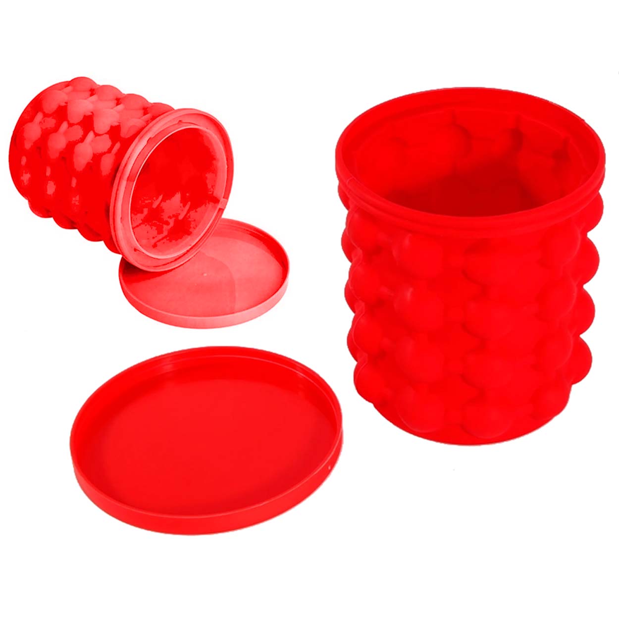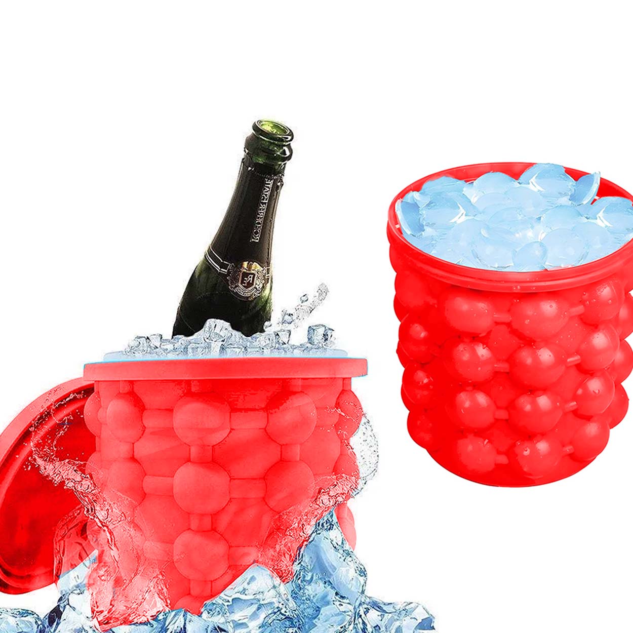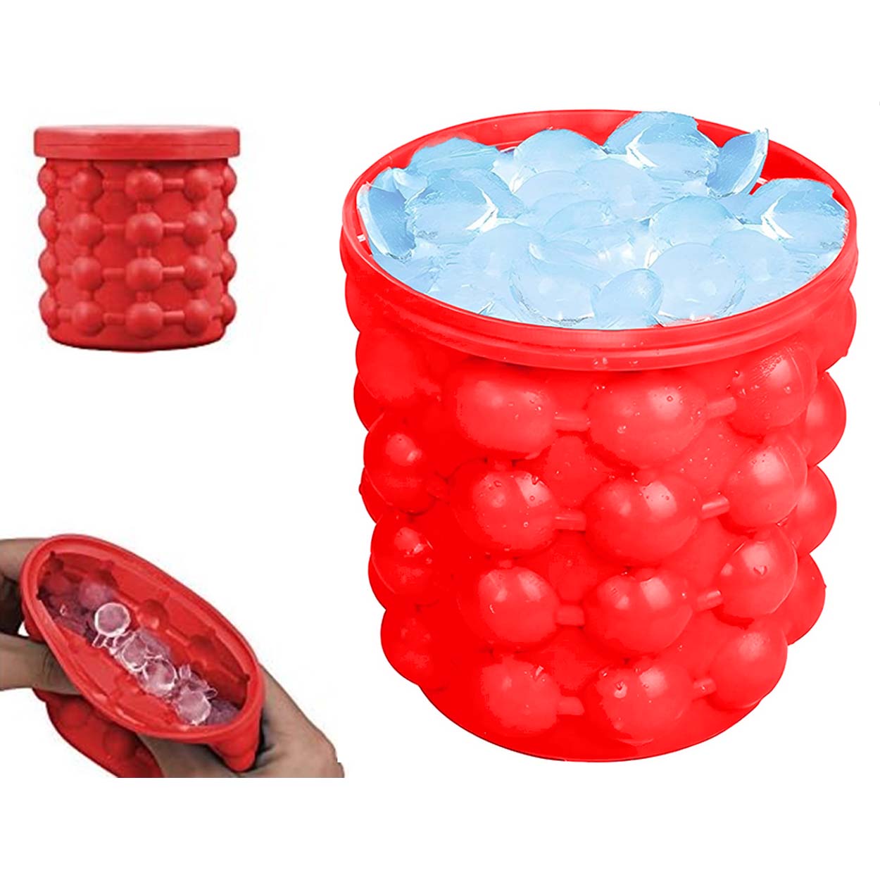 Silikon isform i hinkformat som gör 32 isbitar per omgång och förenklar servering. Formen fylls med vatten mellan yttervägg och innerbehållare, stängs med lock och ställs upprätt i frysen. När isen är klar lyfts innerdelen ur och kuberna lossas genom att trycka på den flexibla silikonväggen. Efter urtagning kan behållaren även användas som en kompakt ishink för att kyla en flaska eller burk. Passar för vardagsbruk, fest och när du vill göra mycket is utan krångel.