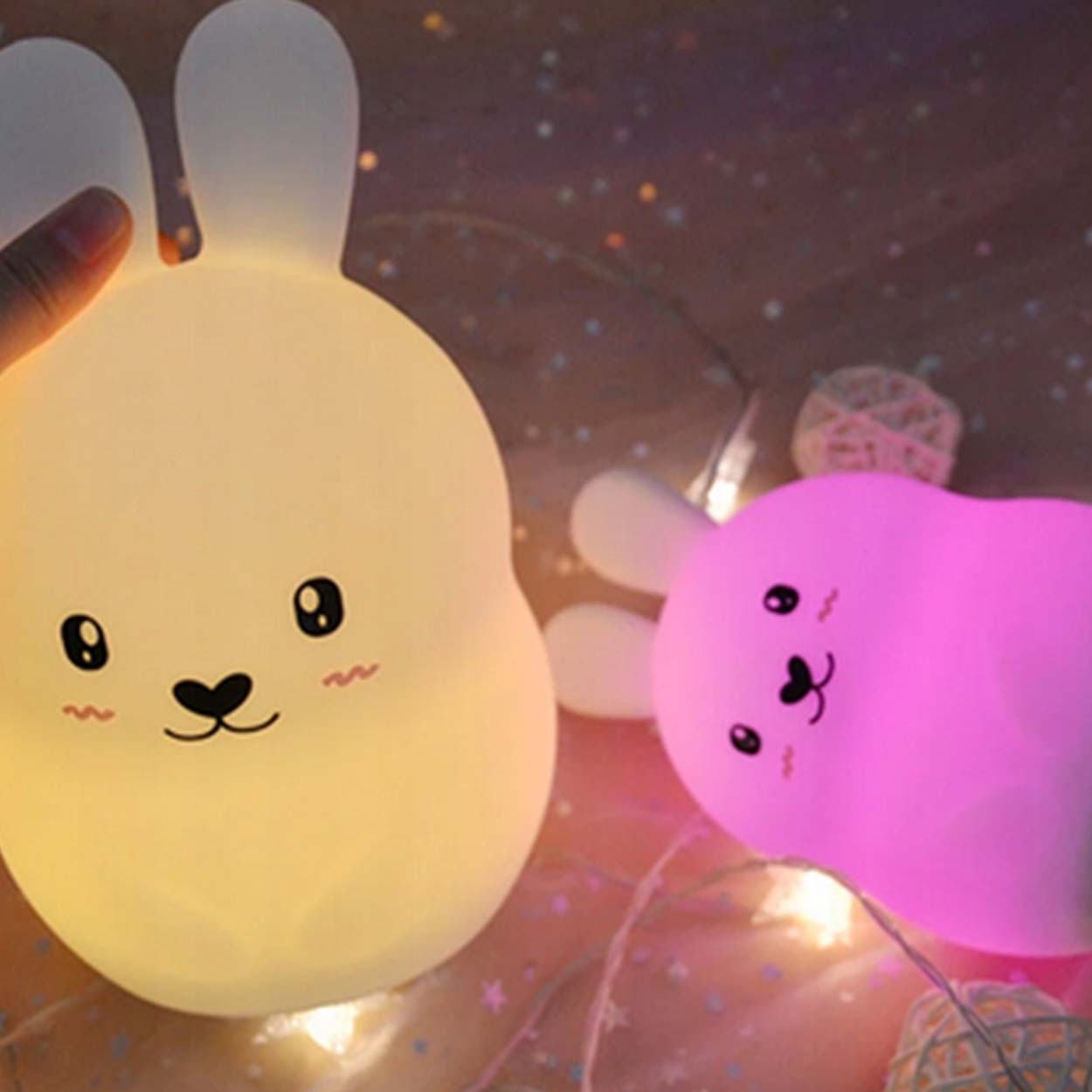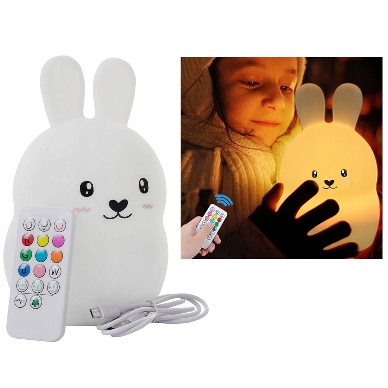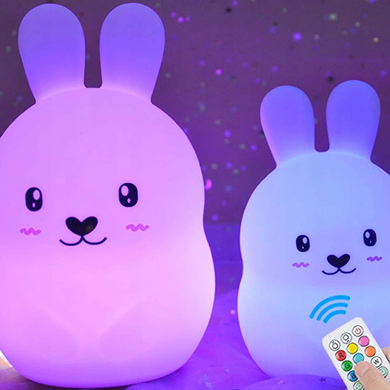 Kanin nattlampa / LED sovlampa – barnrum nattljus – silikon, 1200 mAh, fjärrkontroll, timer