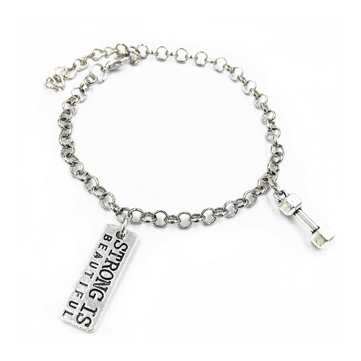 Tingelo Mode & Accessoarer Smycken & förvaring Smycken Kedjearmband / armband dam – motivation träning – justerbar längd, text Strong is Beautiful