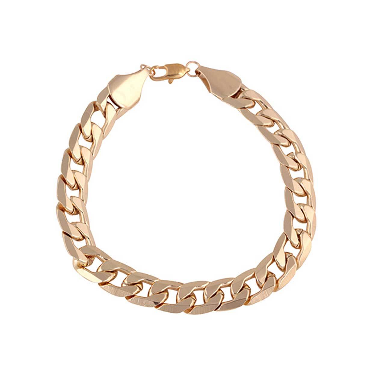 Kedjearmband för herr med bred länk som ger ett tydligt uttryck utan att kännas tungt. Armbandet är tillverkat i stål med guldpläterad yta som ger en slitstark finish för regelbunden användning. Bredden på 10 mm gör att armbandet syns väl på handleden och fungerar både ensamt och tillsammans med klocka. Längden är 21 cm för en stabil passform, och vikten på 11 g gör det bekvämt att bära under hela dagen.