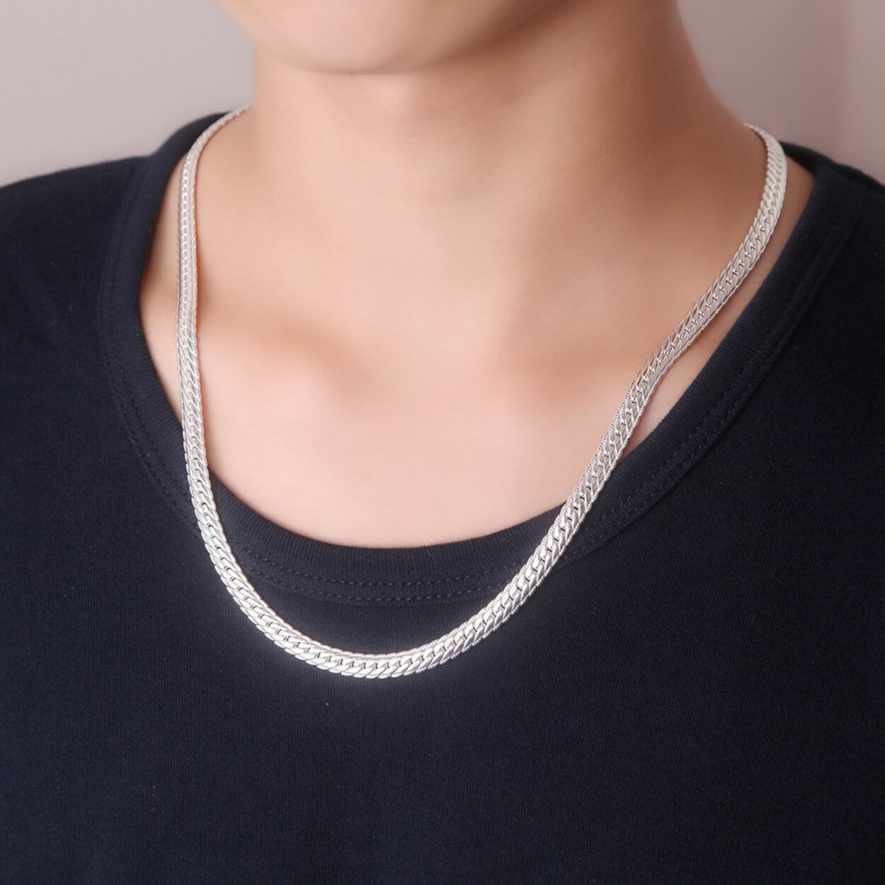 Kedjehalsband / länk halsband – halsband herr – vitguldpläterad metall, 66 cm