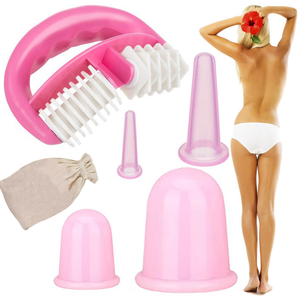 Koppning / gua sha set – massage, lymfdränage – silikonkoppar, cellulitmassager